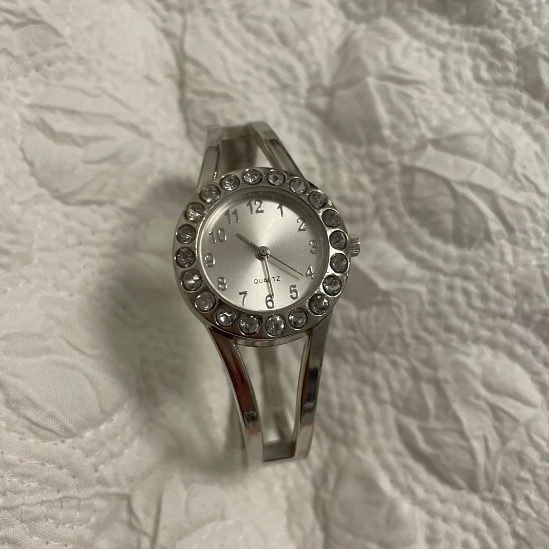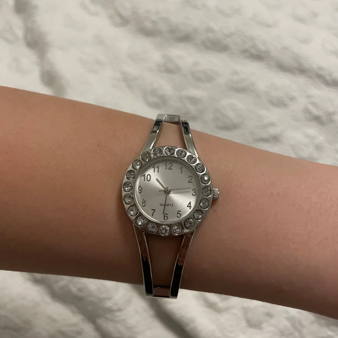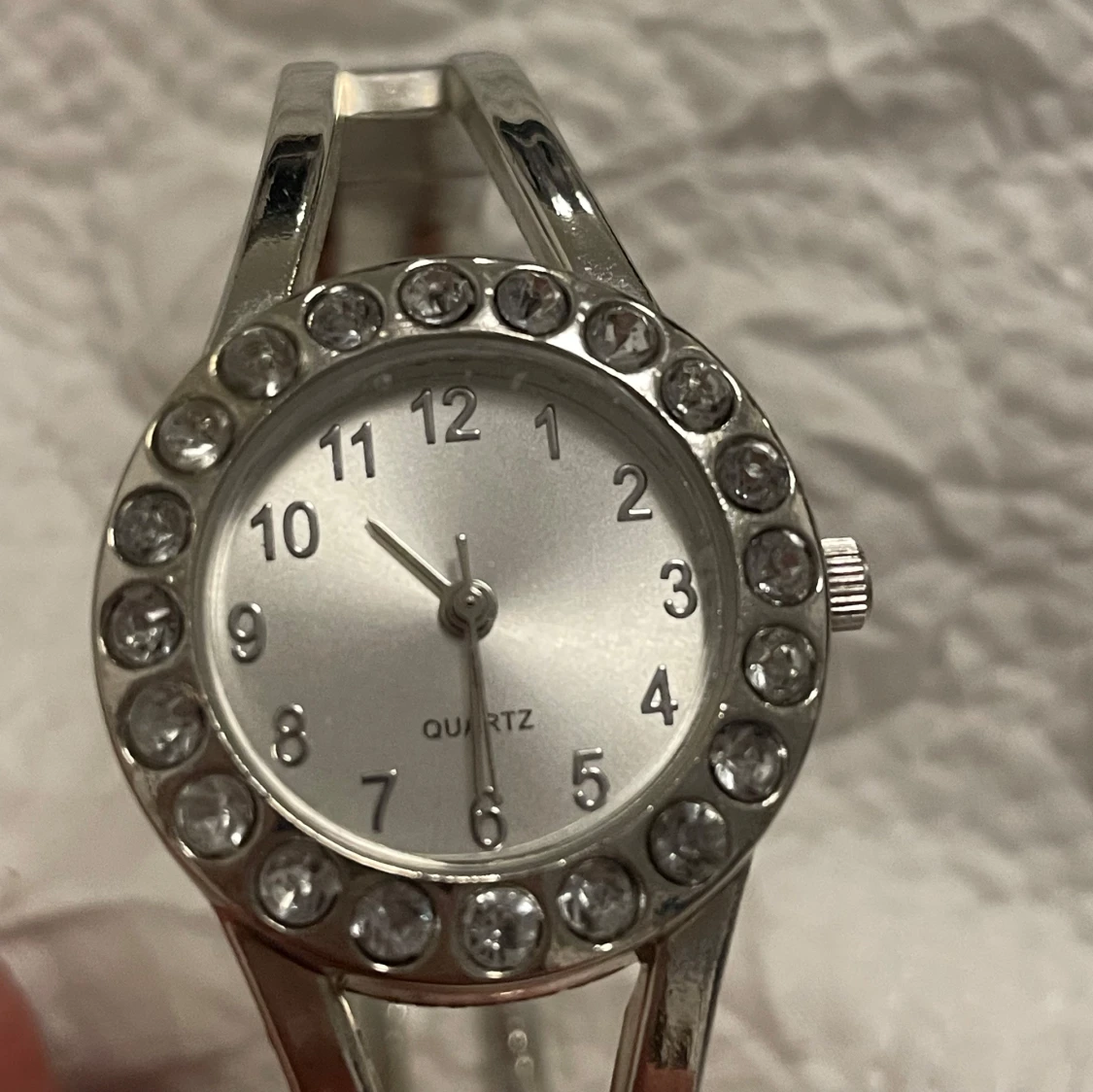 Silverfärgad klocka med stenar runt. Superfint skick💕