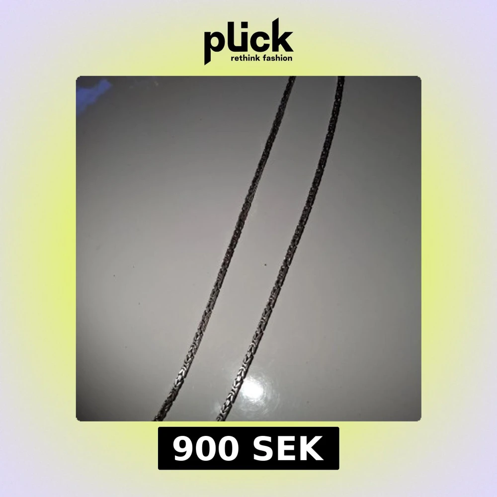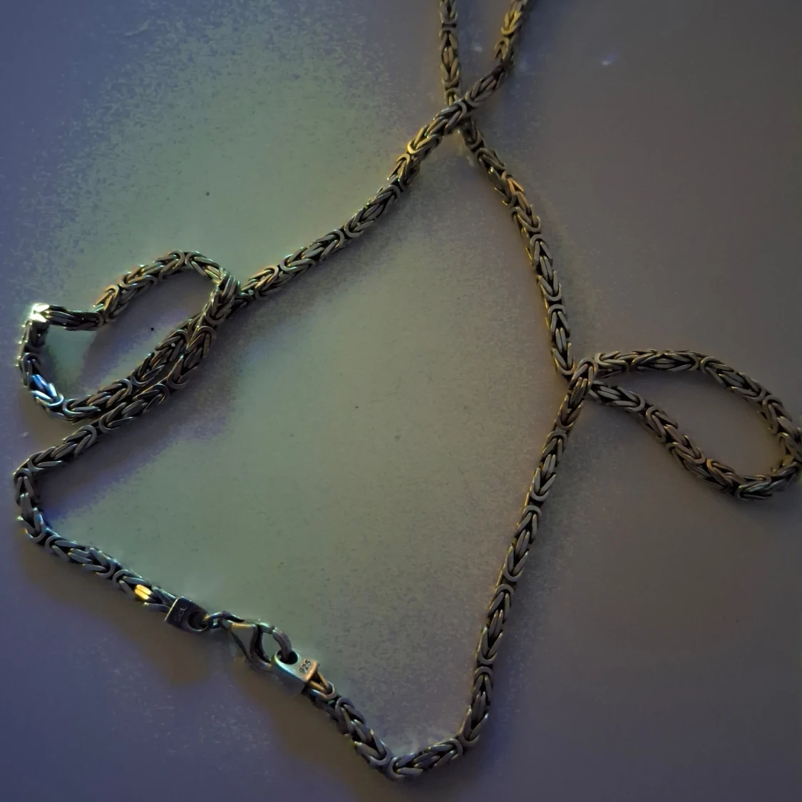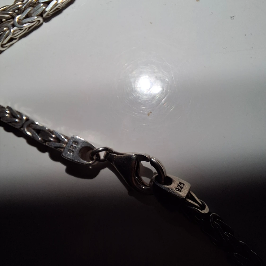 Säljer ett stilrent halsband i silverfärg med snyggt kedjemönster. Halsbandet har en klassisk karbinhake och är märkt med 925, vilket indikerar äkta silver. Perfekt accessoar för att lyfta din outfit.