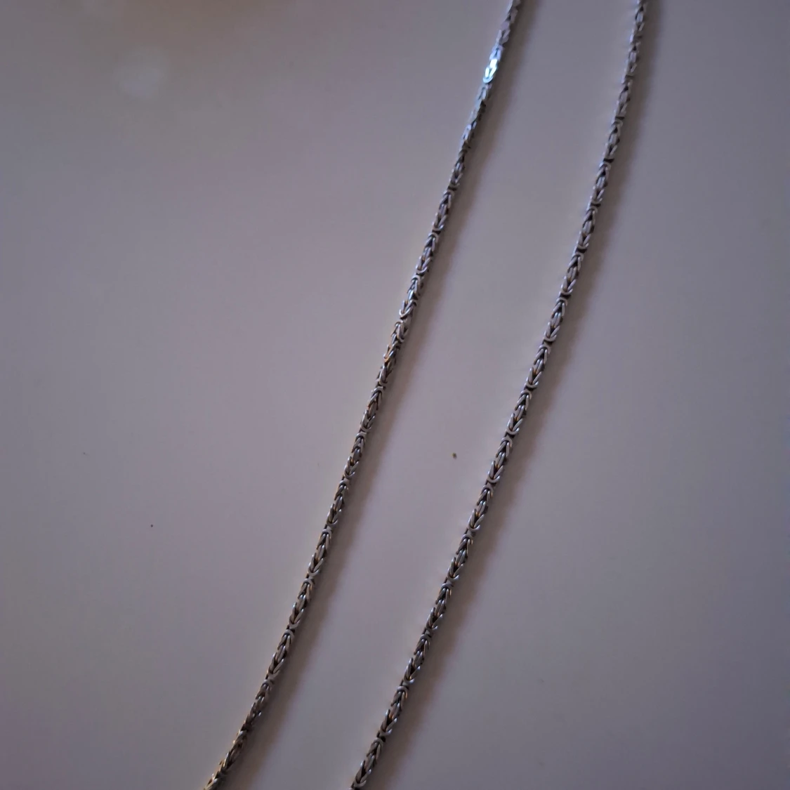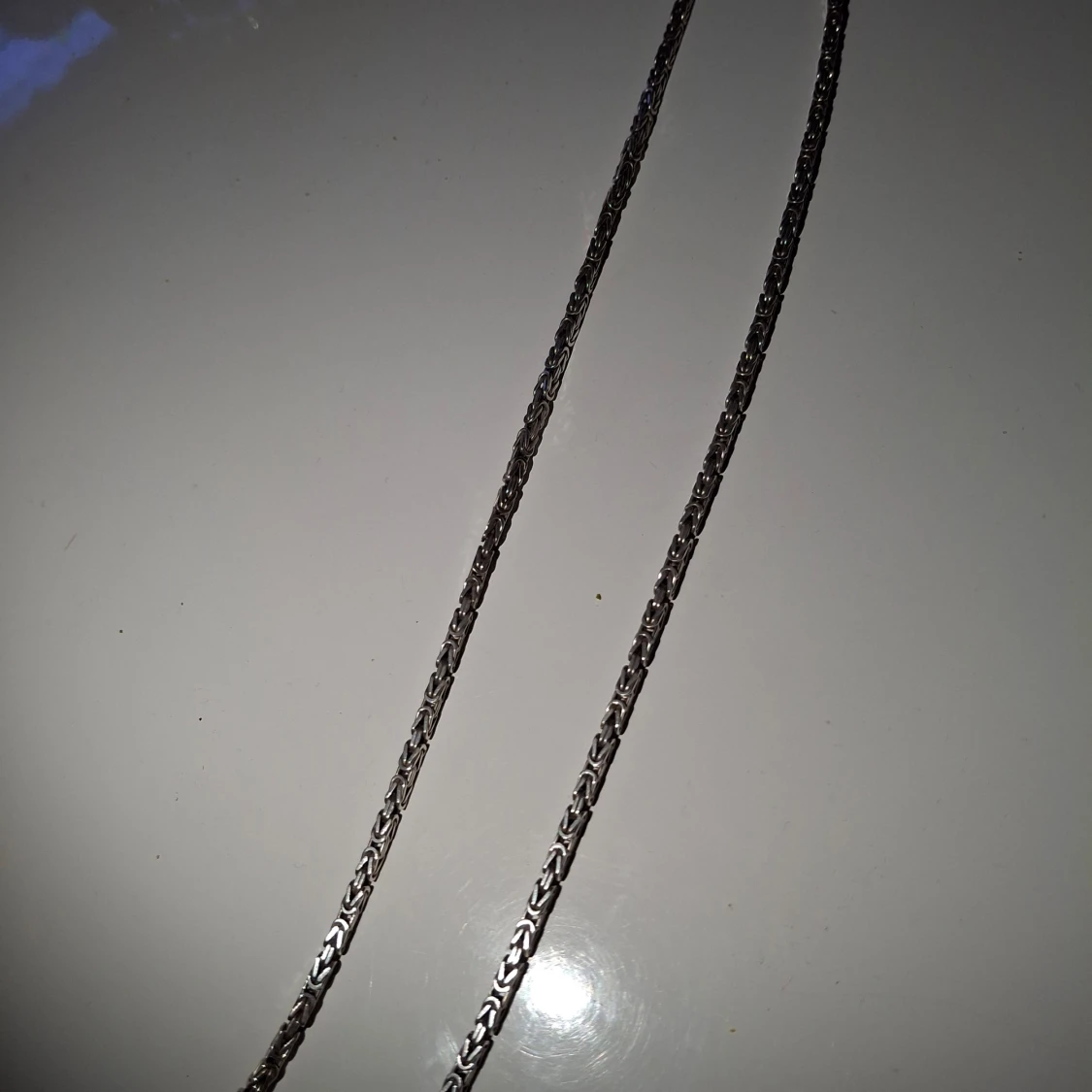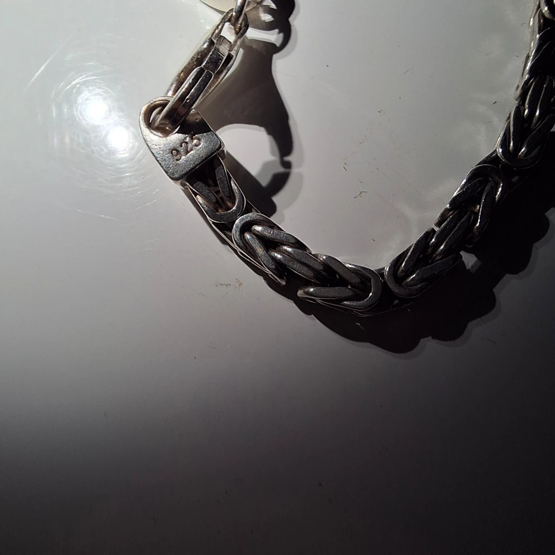 Säljer ett stilrent halsband i silverfärg med snyggt kedjemönster. Halsbandet har en klassisk karbinhake och är märkt med 925, vilket indikerar äkta silver. Perfekt accessoar för att lyfta din outfit.