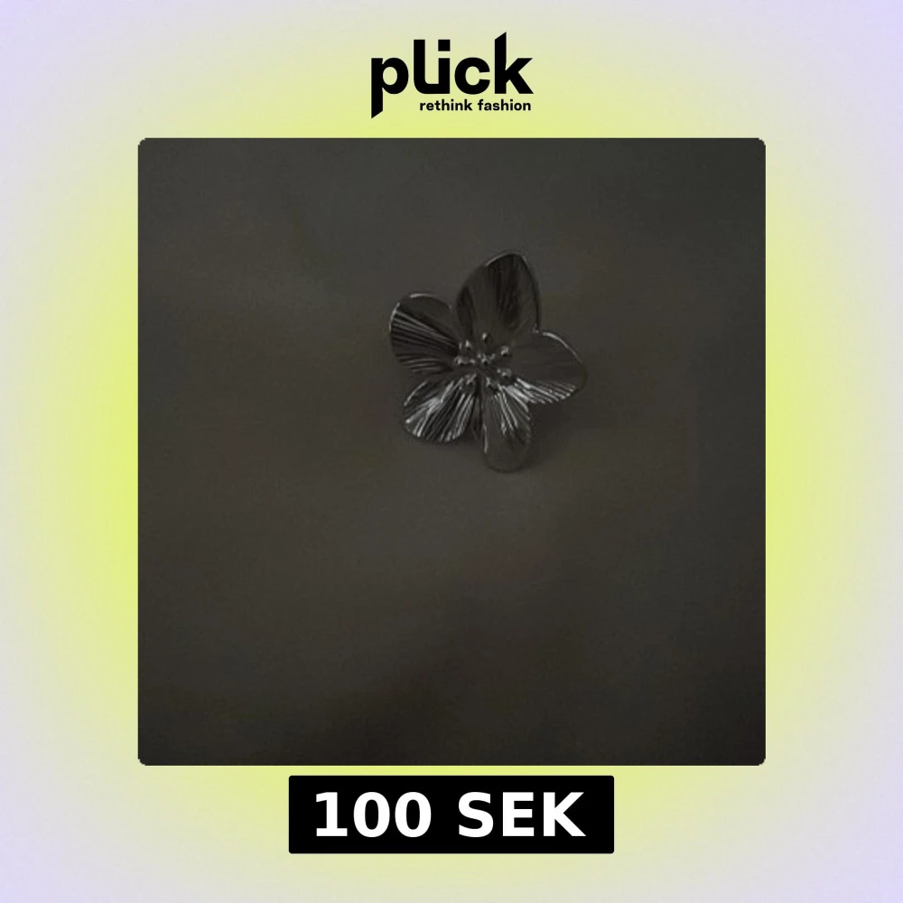 Snygg ring i silverfärgat material med en stor blomma som har fem detaljerade kronblad. Blommans yta är lätt räfflad för extra effekt och ger en cool, modern vibe. Perfekt för dig som vill sticka ut med ett unikt smycke.
