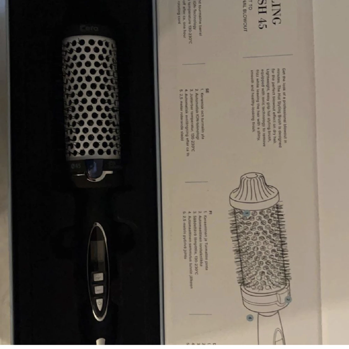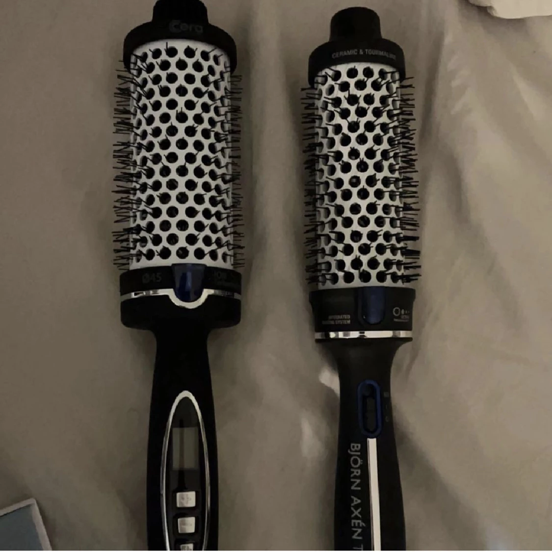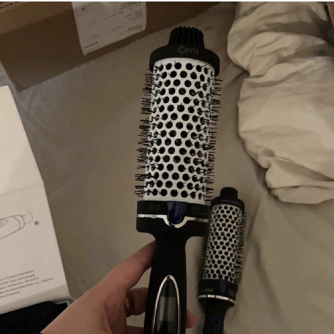 Säljer min cera värme borste som är i storlek 45mm. Säljer då jag köpte fel storlek och kan ej lämna tillbaka då jag packade upp den för att se om det var rätt. Aldrig använd så nyskick. Den till höger är 38mm och den till vänster 45mm.
