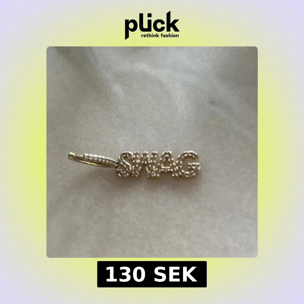 Söt örhänge där det står swag på i diamanter. Det ska finnas två men ena har jag tyvärr tappat bort