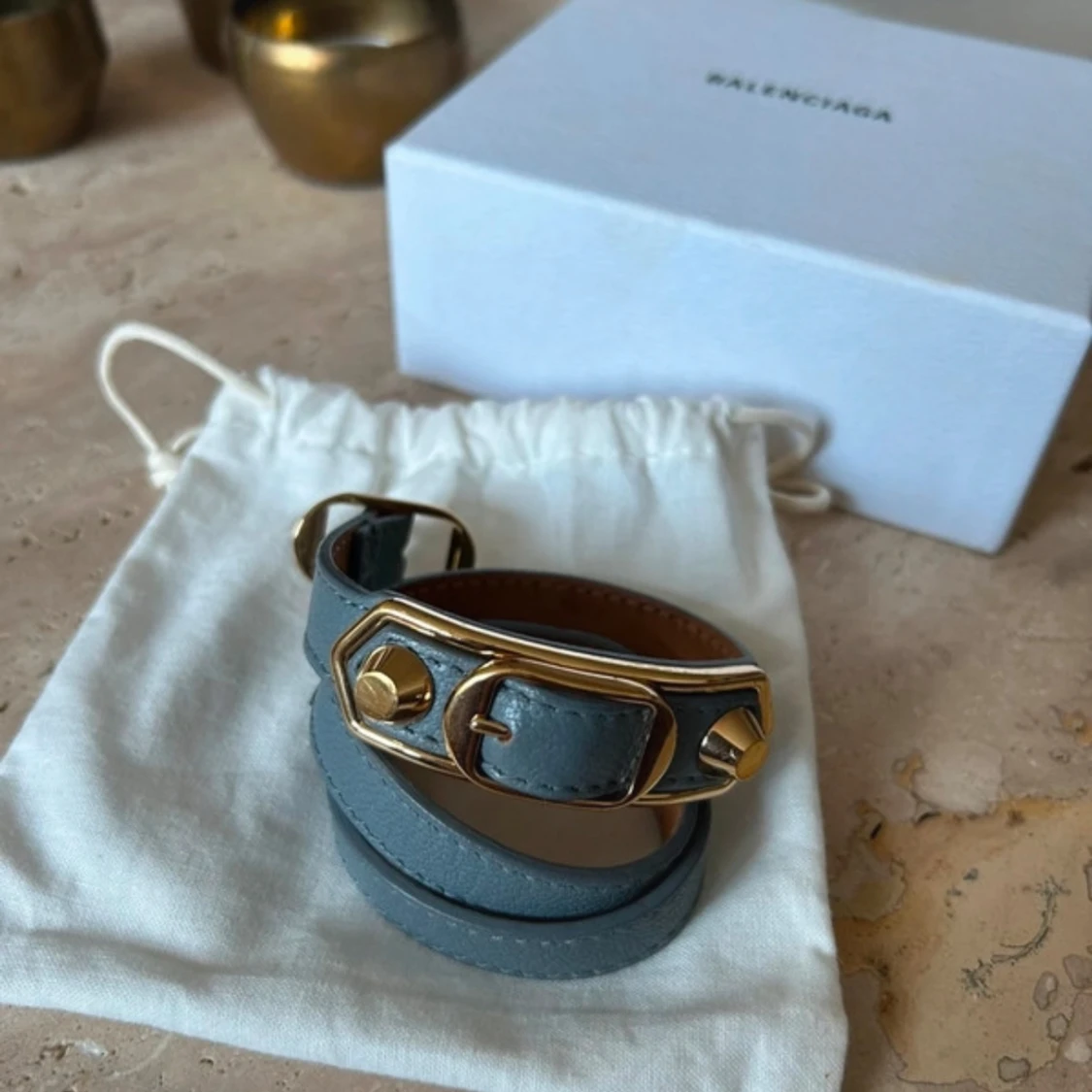 Snyggt grått armband från Balenciaga med guldfärgade detaljer. Dustbag och låda tillkommer🌸 armbandet har inga slirningar