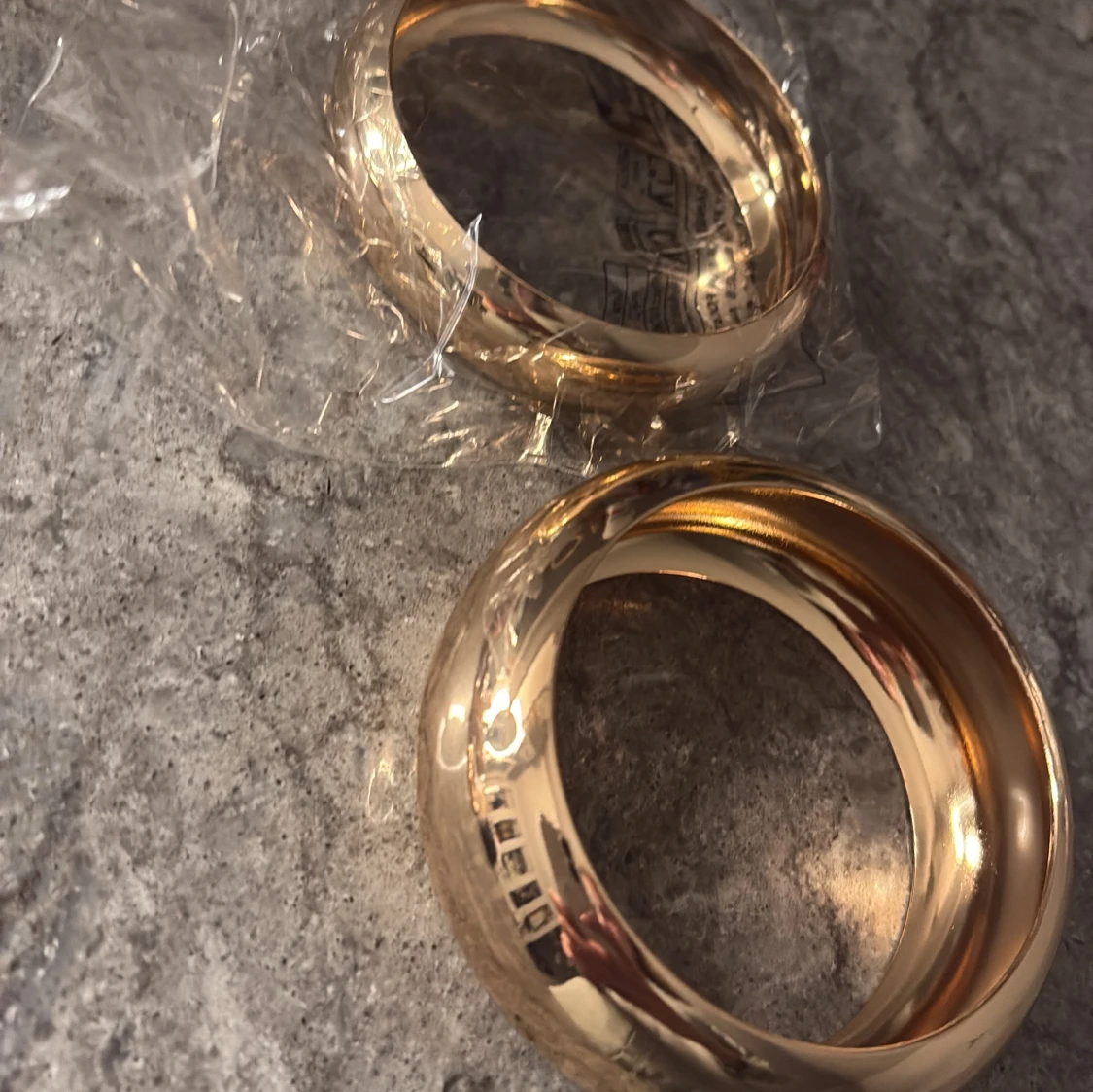 Två st supersnygga och coola guldarmband i metall. Ett tjockt och att tunnare. Båda har diametern 6,5 cm. Inga repor eller skråmor. Som nya!!💗💗 säljer 1 för 100 eller 2 för 170