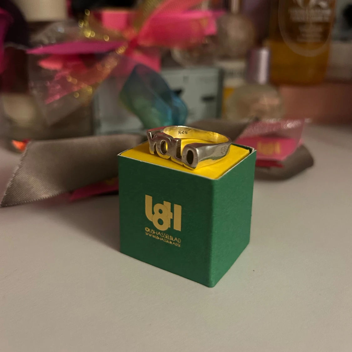 YOLO ring i äkta silver från L8H. Original ask från L8Hasselblad ingår.💗💗Säljer då den inte kommer till användning längre men den ser ut som ny. Ordinarie pris 1300kr💗