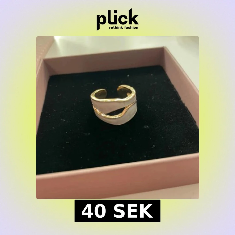 Elegant ring i guld och vit med en vågig design. Perfekt för att ge en stilren touch till din outfit! Helt ny!!