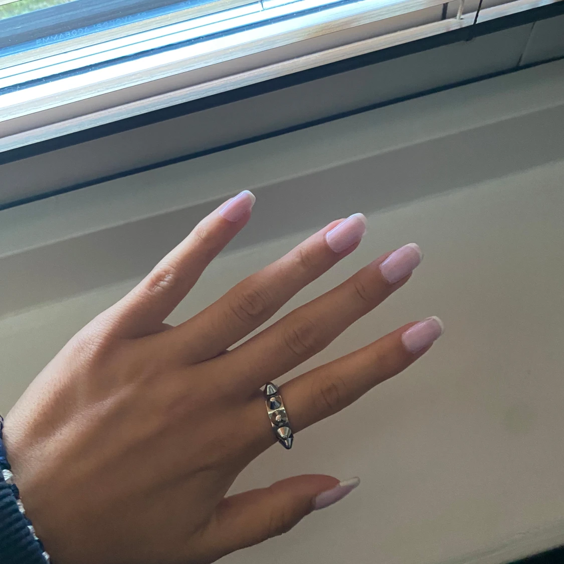 silvrig ring med nitar edblad