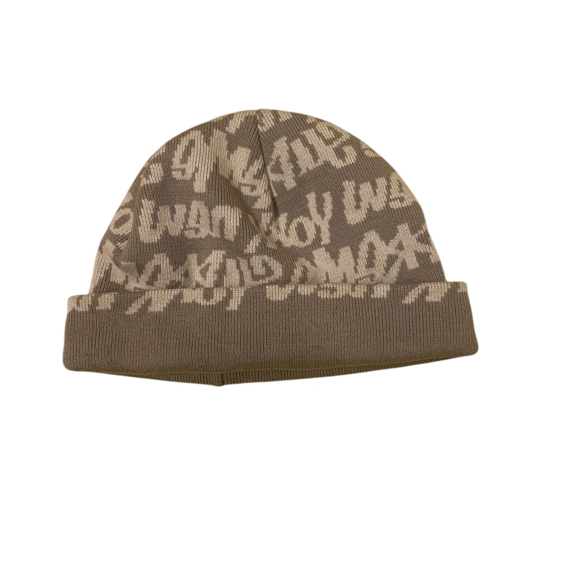 Snygg beige mössa från Supreme med ett coolt graffiti-mönster i vitt. Tillverkad i 100% bomull, perfekt för att hålla stilen året runt. En unik accessoar för den modemedvetna.