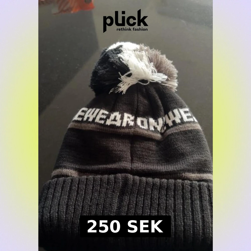 Snygg svart och grå stickad mössa från Onewear med stor tofs i svart, grått och vitt. Texten 'ÅRE' och bergmotiv broderat framtill ger en cool vibe. Perfekt för kalla dagar och vinterhäng.