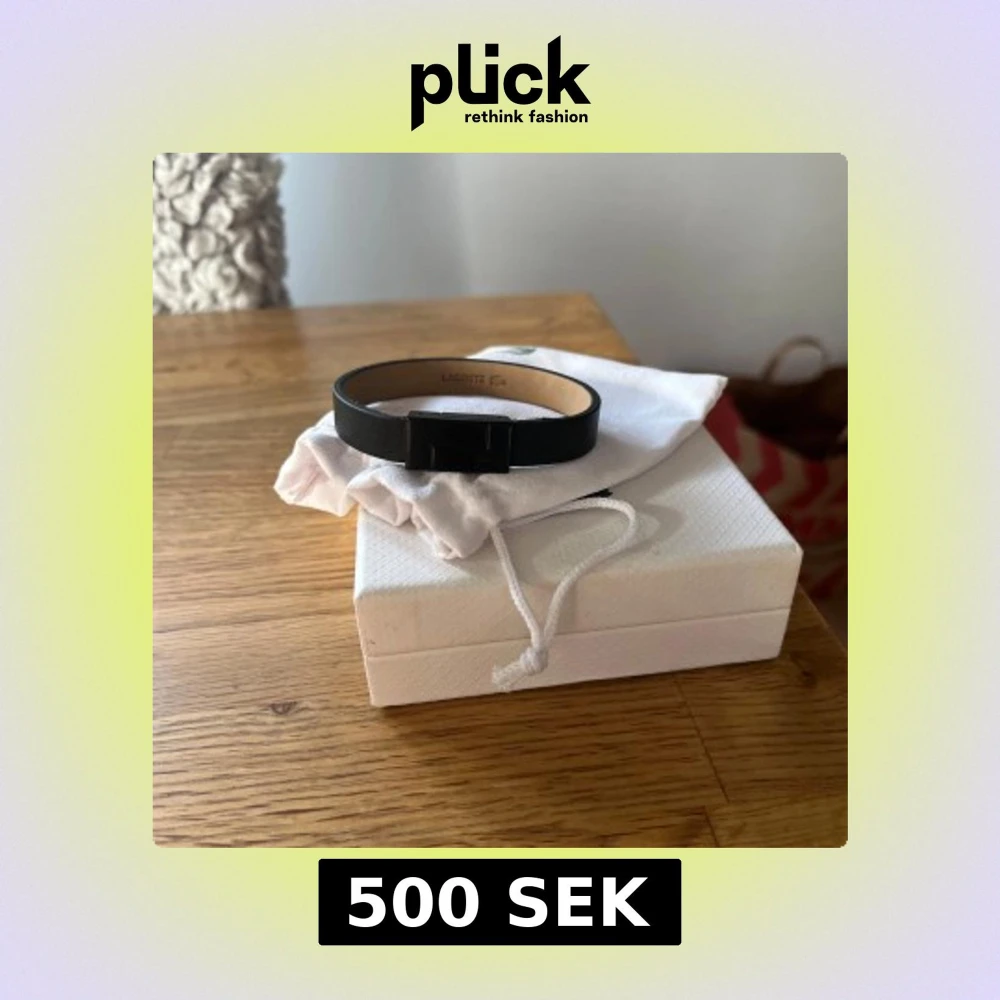 Säljer detta Lacoste armband i skinn då det var för stort för mig,armbandet är cirka 21cm långt. Kommer i original box, samt en påse skriv för fler bilder