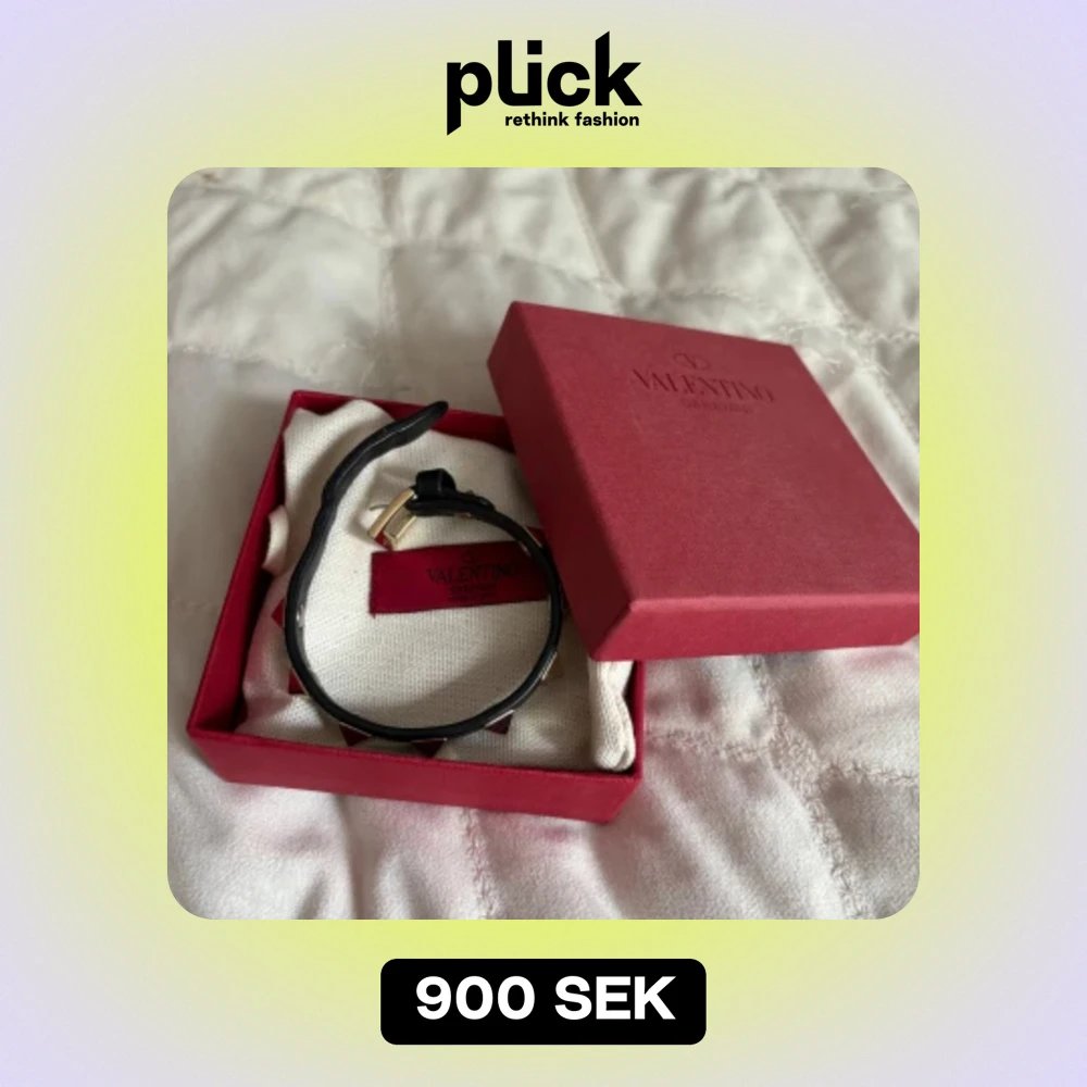 Säljer ett snyggt svart armband från Valentino med coola silverfärgade nitar. Armbandet kommer i en elegant röd ask och är perfekt för att ge en edgy touch till vilken outfit som helst. Det är justerbart och passar de flesta handleder. Perfekt för både vardag och fest!