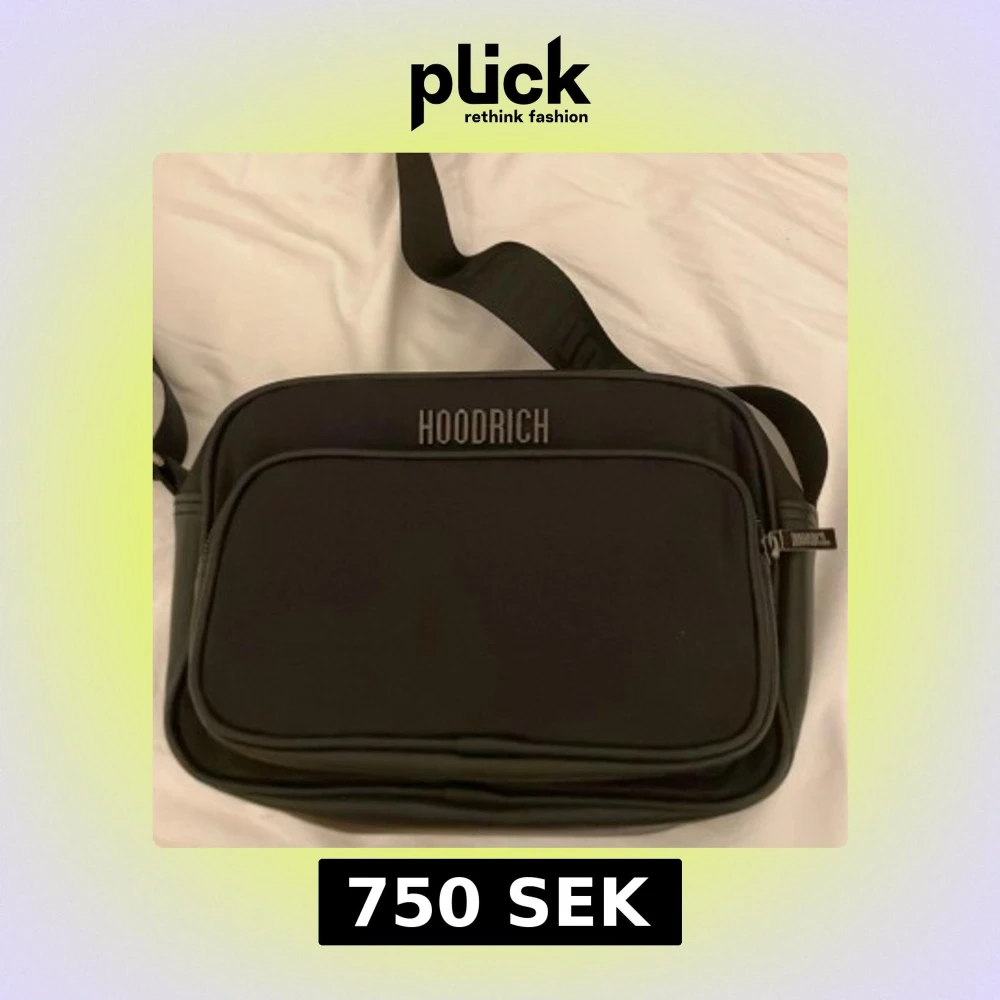 Snygg svart axelväska från Hoodrich med justerbar rem och dragkedja. Perfekt för att bära med sig det viktigaste. Stilren design med logotyp på framsidan.