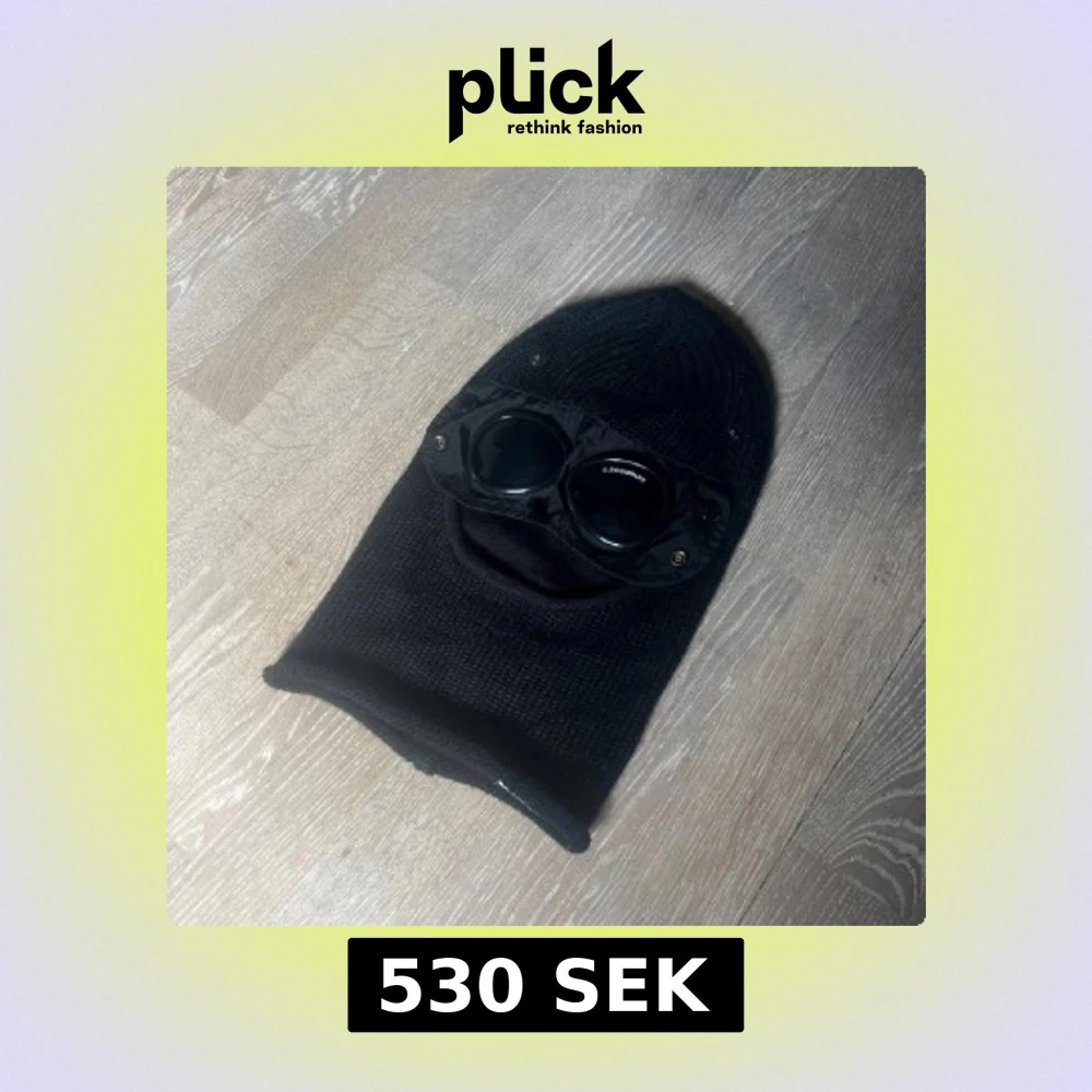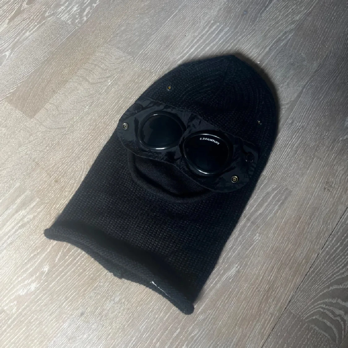Svart stickad balaclava från C.P. Company med inbyggda goggle-glasögon framtill. Mössan har en cool och unik design som sticker ut, perfekt för dig som gillar streetwear och vill ha något annorlunda. Materialet är mjukt och värmande stickat tyg.