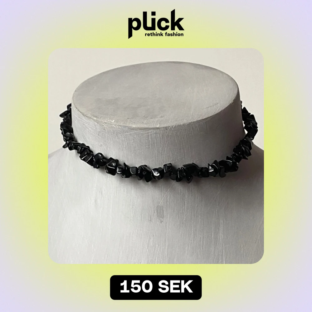 Snyggt svart choker-halsband med små, oregelbundna stenar som ger en cool och edgy look. Perfekt för att lyfta en outfit till fest eller vardag. Halsbandet har ett enkelt guldspänne som gör det lätt att ta på och av. Passar perfekt till både casual och mer uppklädda tillfällen.