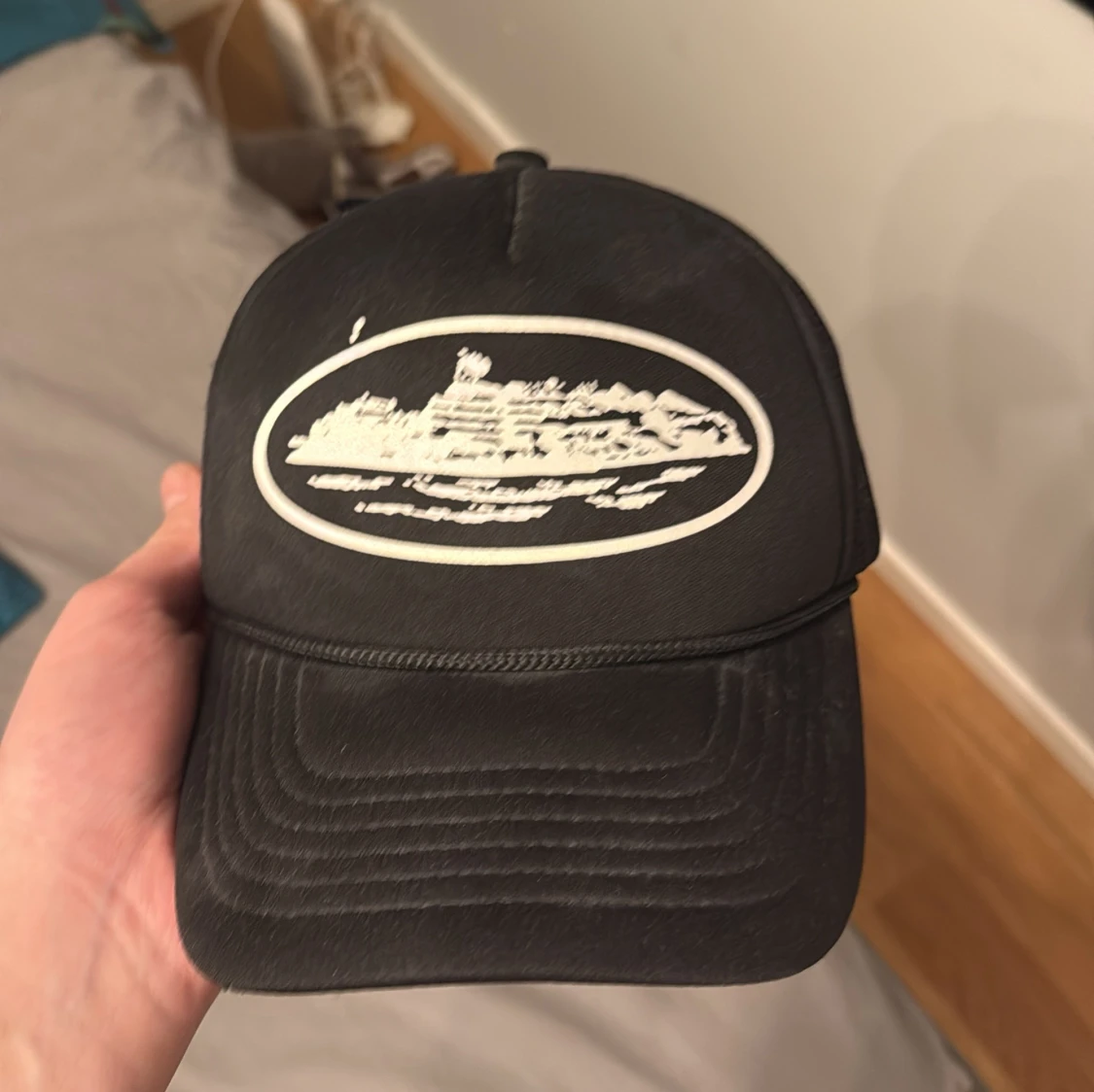 Snygg svart keps med ett vitt tryck av en båt på framsidan. Kepsen har ett nätmaterial på sidorna för bättre ventilation. Perfekt för en avslappnad stil.