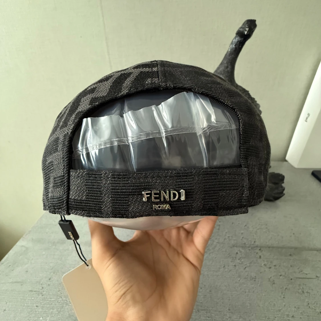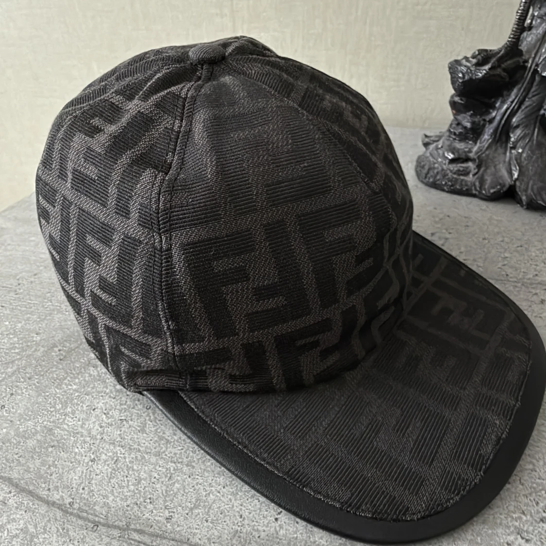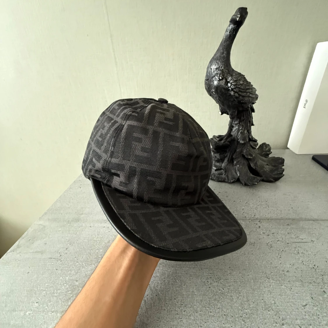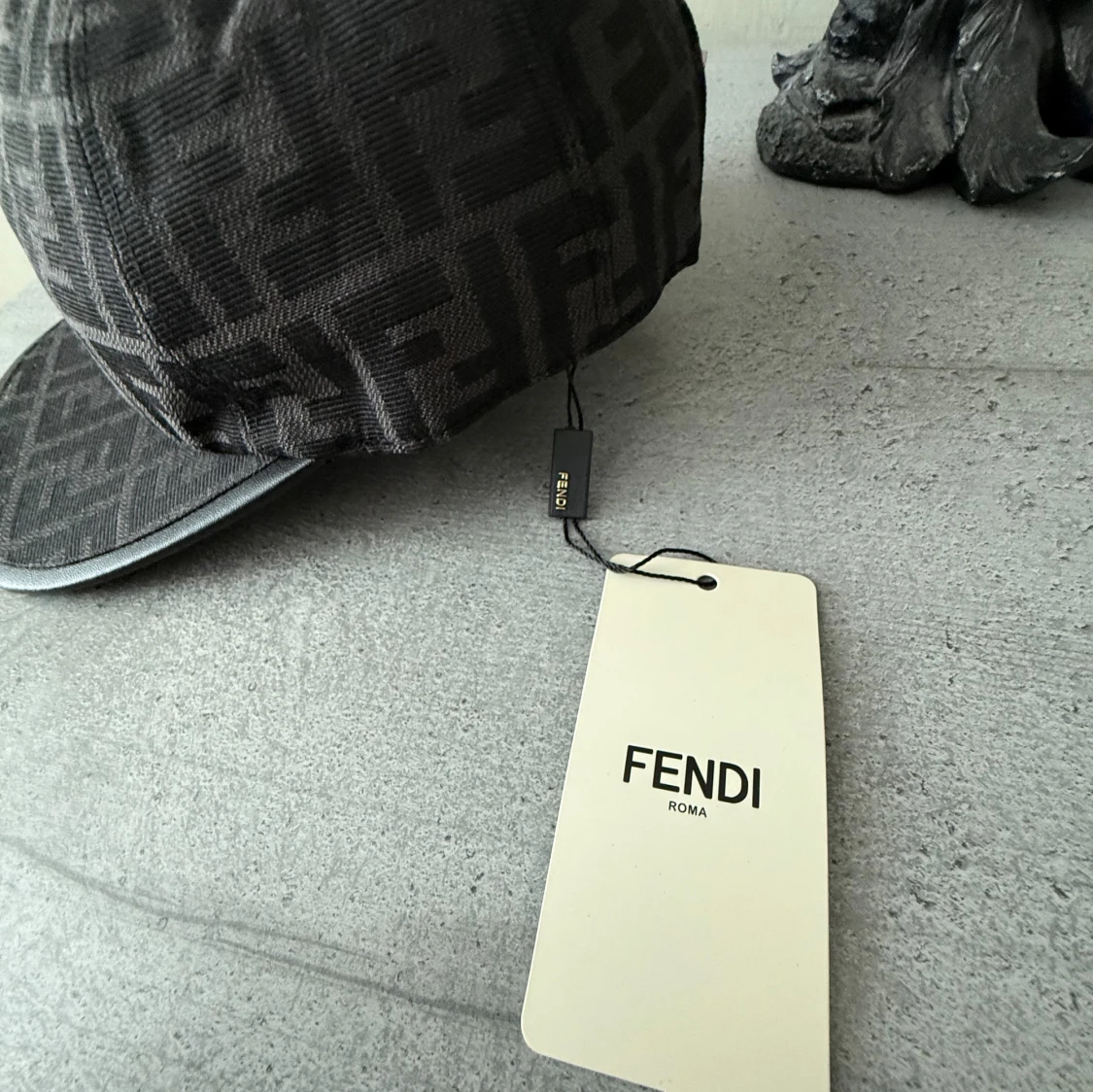 Snygg svart keps från Fendi med ikoniskt FF-mönster över hela kepsen. Justerbar baktill med metallspänne och Fendi Roma-logga.