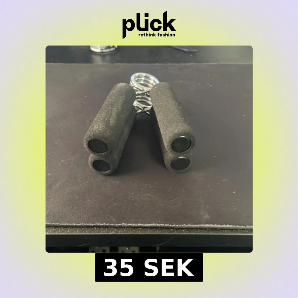 Säljer en svart handtränare med mjuka skumhandtag och en robust metallfjäder. Perfekt för att stärka greppet och underarmarna. Lätt att använda hemma eller på kontoret.