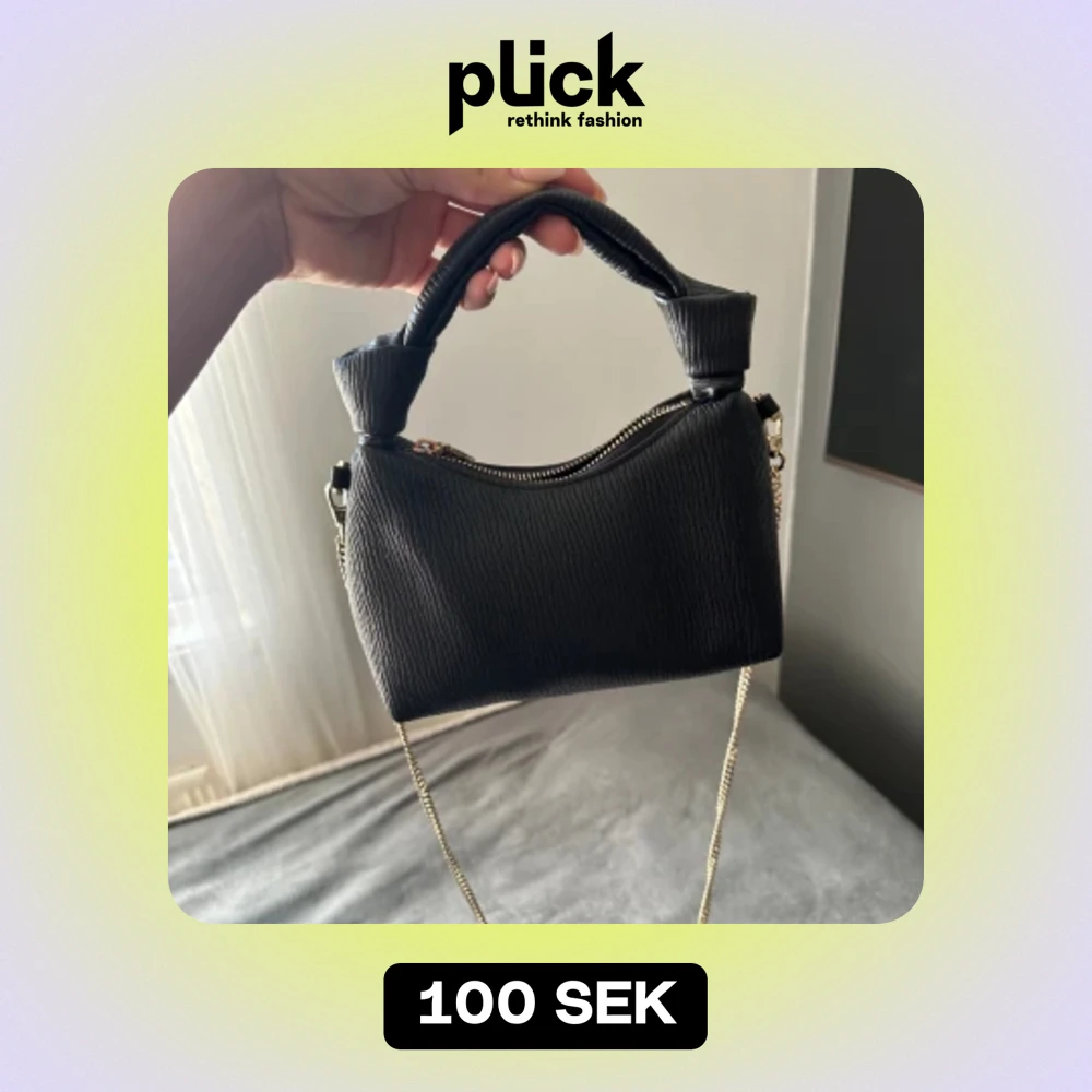 Liten svart handväska med guldkedja, perfekt för fest!❣️