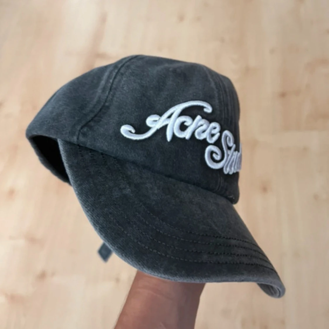 Snygg svart keps från Acne Studios med broderad vit logga framtill och på skärmen. Klassisk böjd skärm och justerbar passform. Tillverkad i mjuk bomull som ger en avslappnad vibe. Perfekt accessoar för att lyfta din outfit.