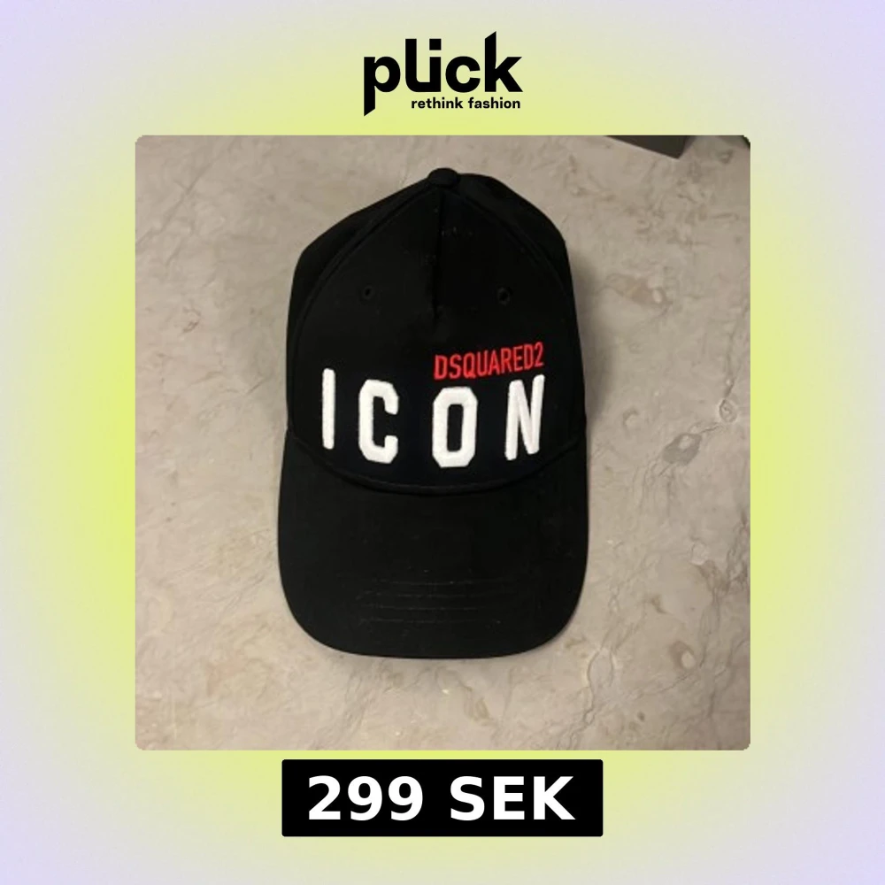 Snygg svart keps från Dsquared2 med texten 'ICON' broderad i vitt och märkesnamnet i rött. Kepsen har en justerbar rem baktill för perfekt passform. Den är helt oanvänd endast klippt av lappen