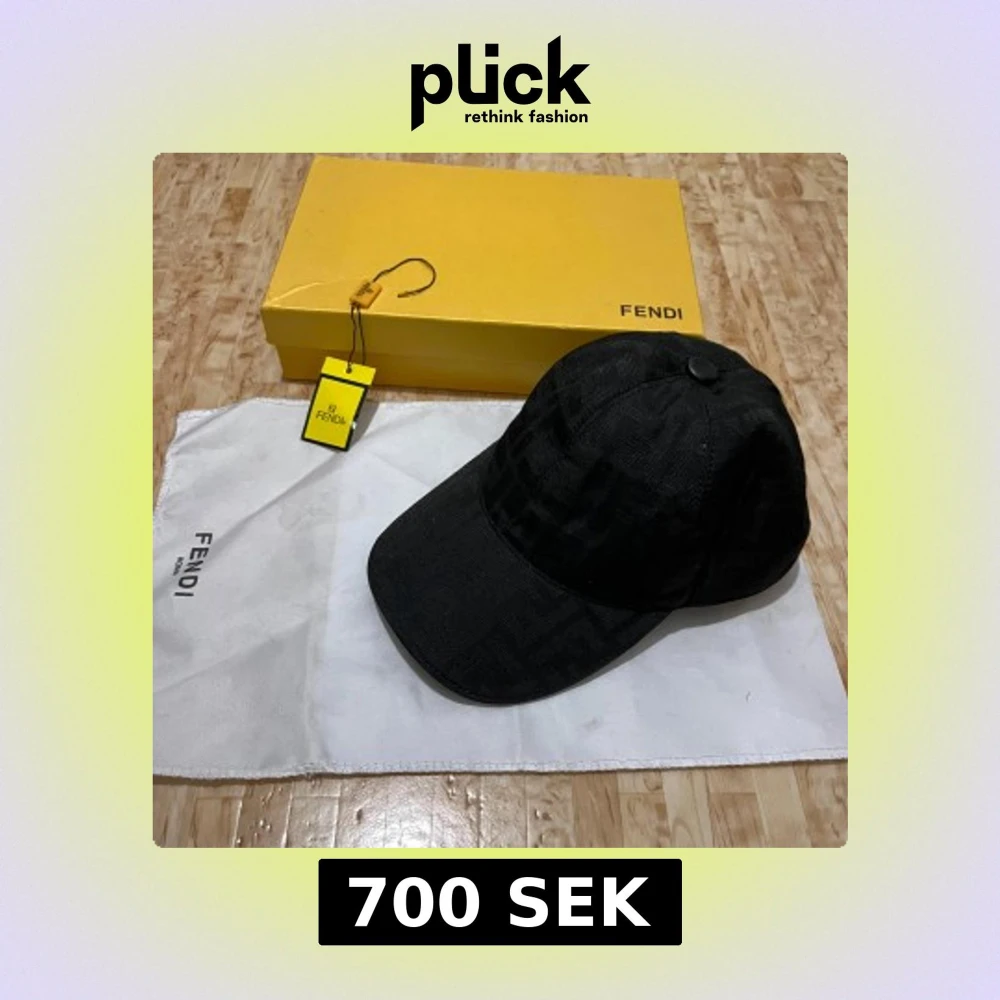 Exklusiv svart keps från Fendi med diskret FF-mönster i tyget. Kepsen är tillverkad i 100% bomull och har justerbar rem baktill med Fendi-logga i läder. Snygg och stilren accessoar som lyfter din outfit. Pris kan diskuteras