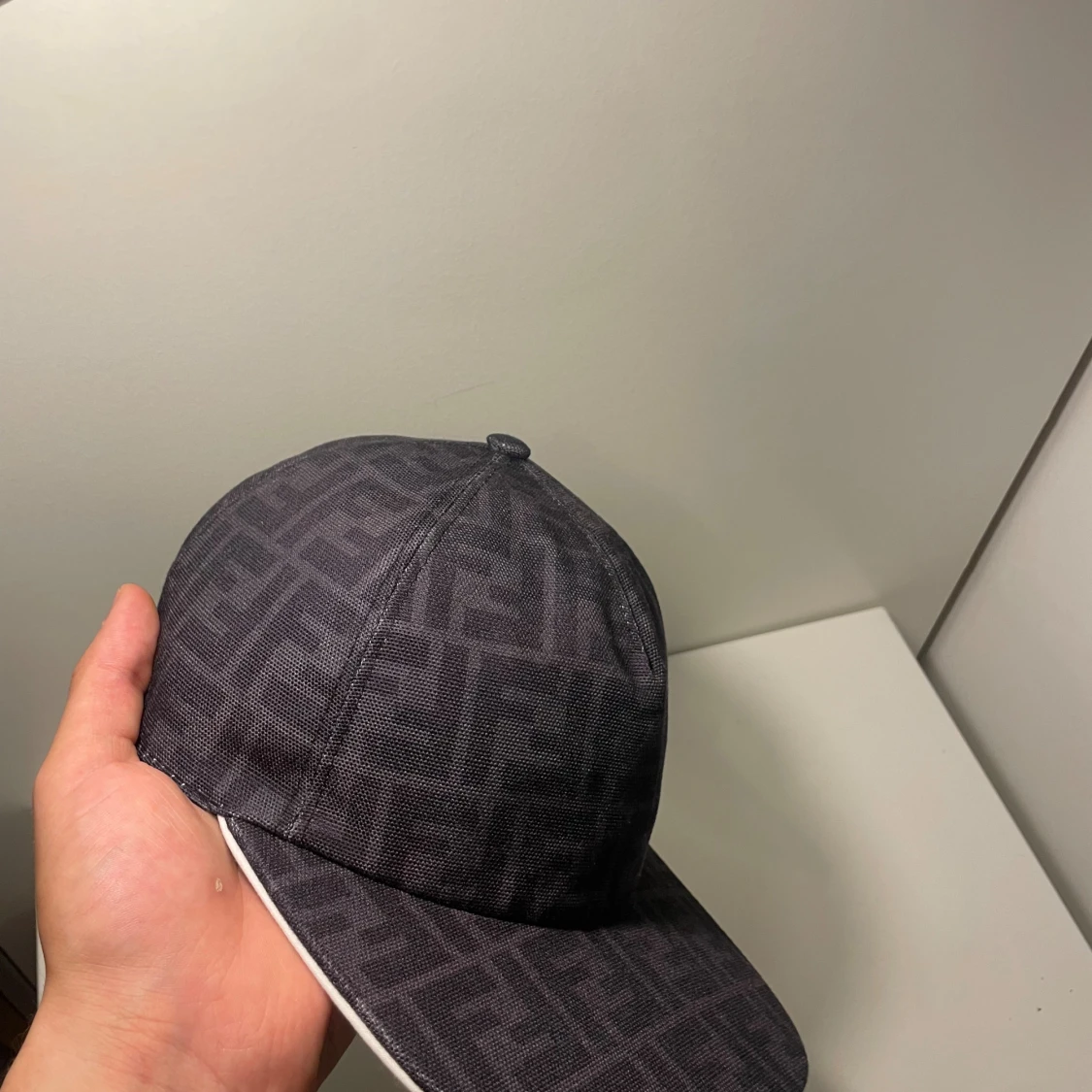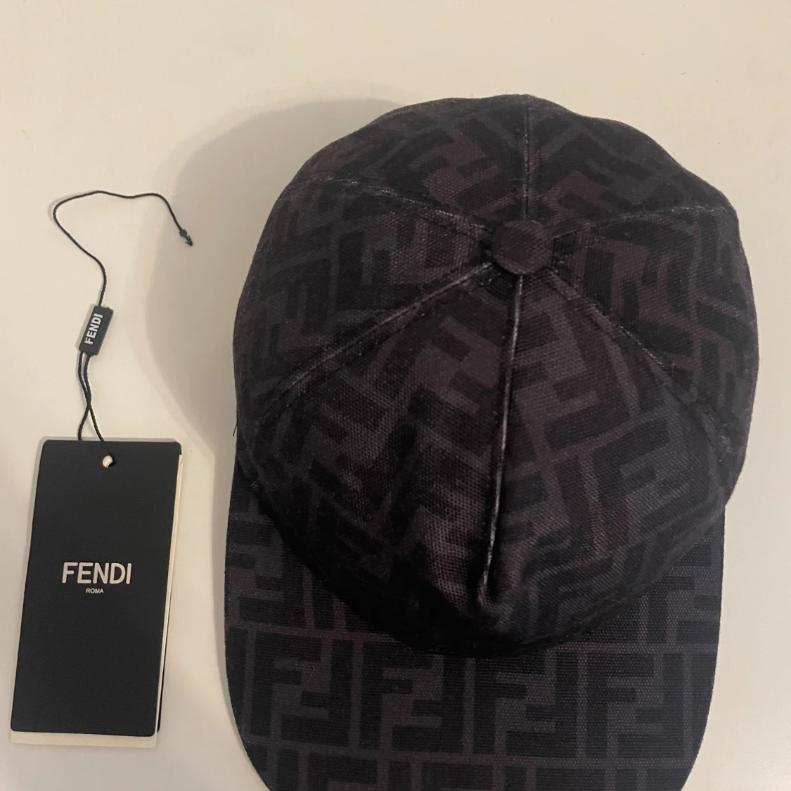 Snygg svart keps från Fendi med ikoniskt FF-logomönster över hela kepsen. Klassisk böjd skärm med vit kant och justerbar rem baktill. Tryck på köp så är denna härliga keps påväg till dig inom 6 timmar. Skriv om du har minsta lilla fråga!