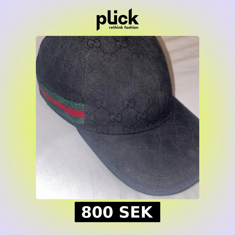 Säljer en svart keps från Gucci med diskret GG-monogram över hela kepsen. Klassisk böjd skärm och justerbar rem baktill i svart läder. Sidan har en grön och röd randig detalj som är typisk för Gucci.