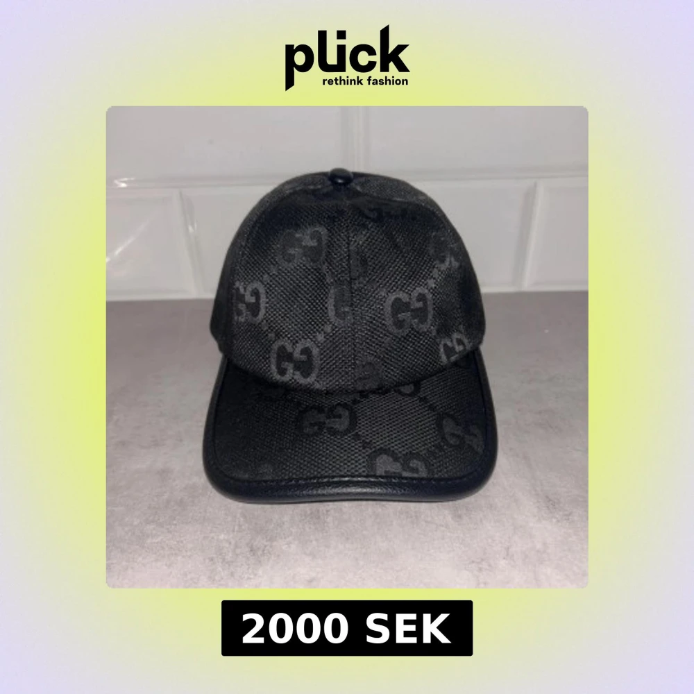 Snygg svart keps från Gucci med klassiskt GG-mönster över hela kepsen. Justerbar rem baktill i svart skinn med gulddetalj. Kepsen är tillverkad i ett slitstarkt syntetmaterial och har en böjd skärm. Perfekt för dig som vill ha en lyxig och stilren accessoar.