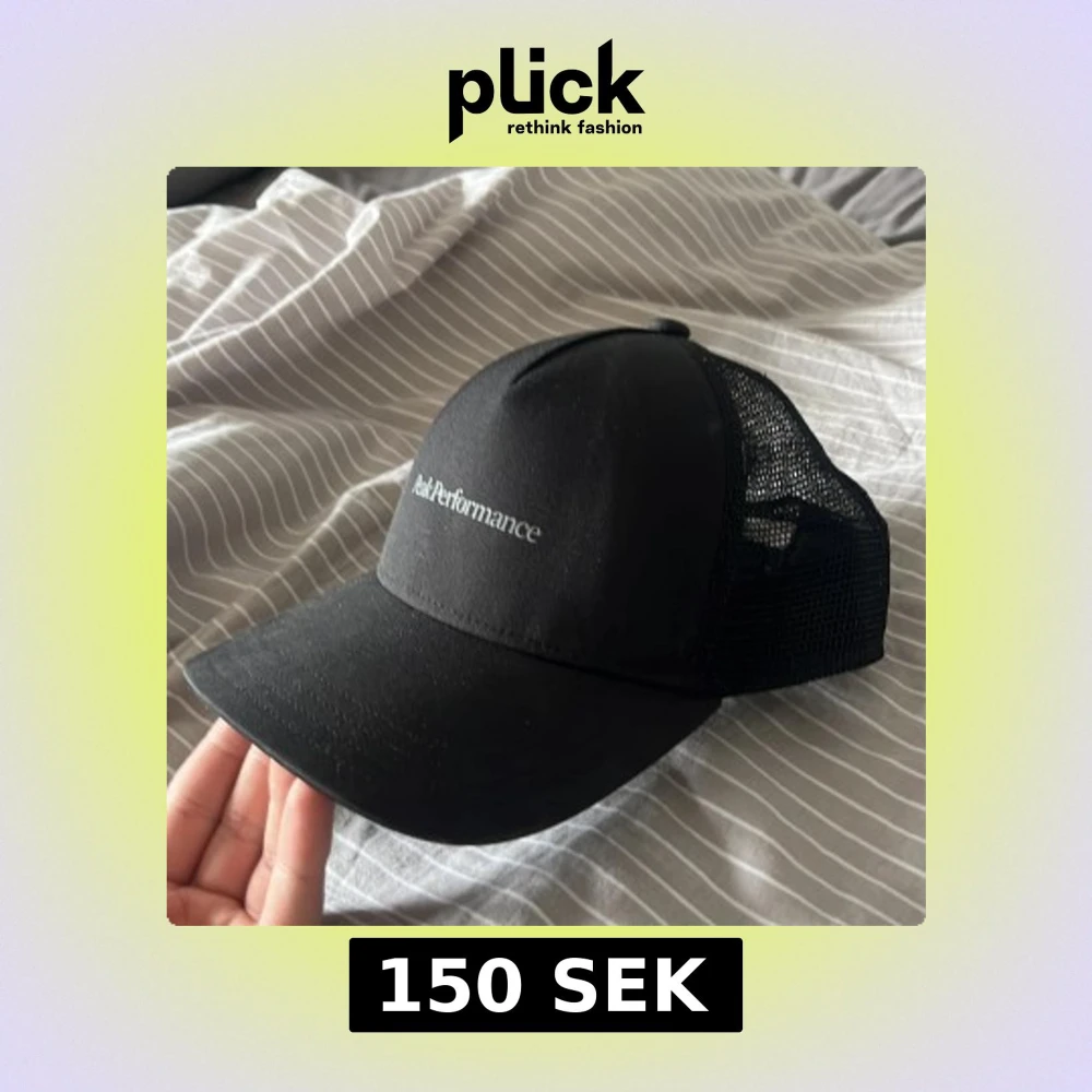 Säljer en svart keps från Peak Performance med vit broderad logga framtill. Kepsen har böjd skärm, mesh på sidorna och justerbar snapback baktill. Perfekt för en sportig och avslappnad stil.