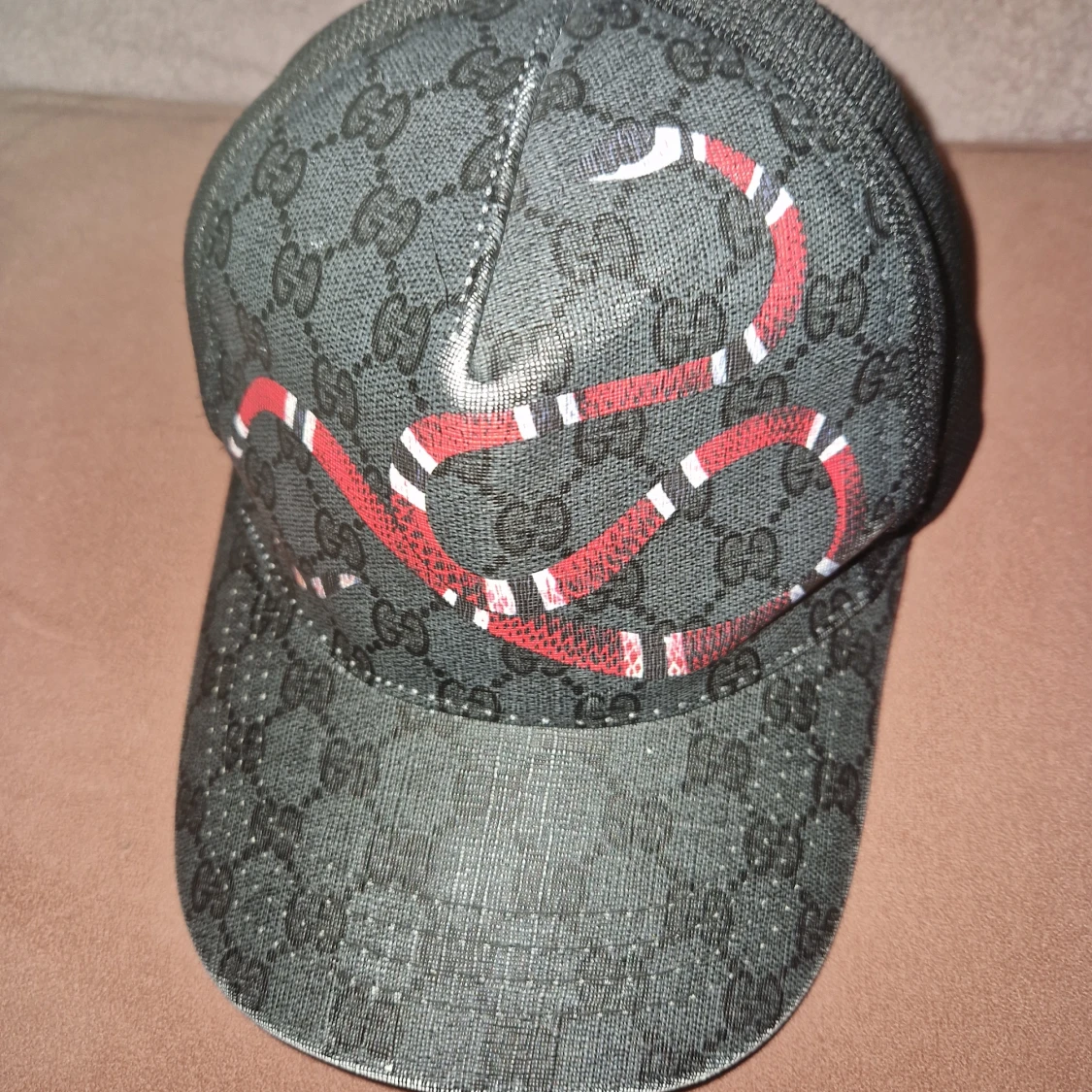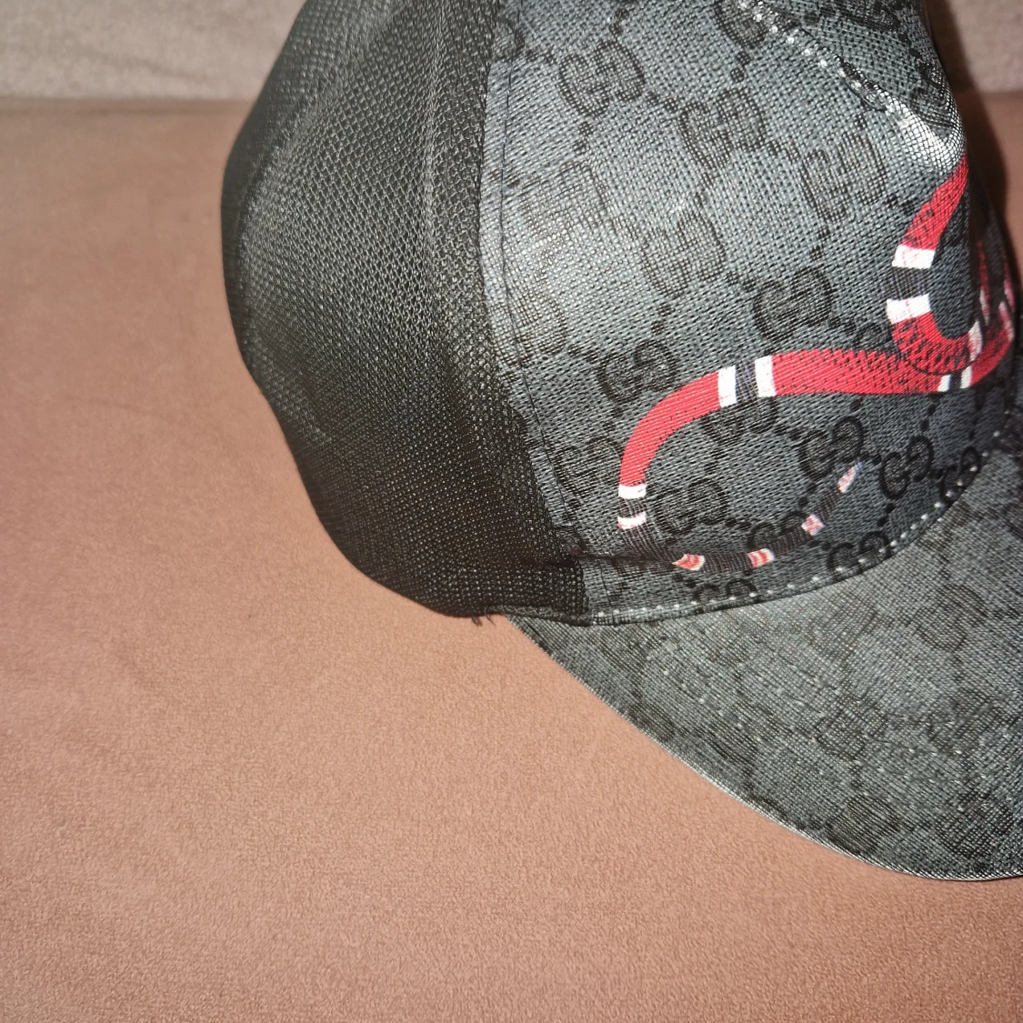 Snygg svart keps från med klassiskt GG-mönster och en röd och vit orm på framsidan. Kepsen har nät på sidorna och justerbar rem baktill. Perfekt för dig som vill sticka ut med en exklusiv accessoar.