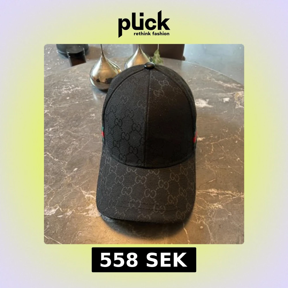 Snygg svart keps med gg mönster. Justerbar rem baktill. Tillverkad i bomull med detaljer i polyester och elastan.