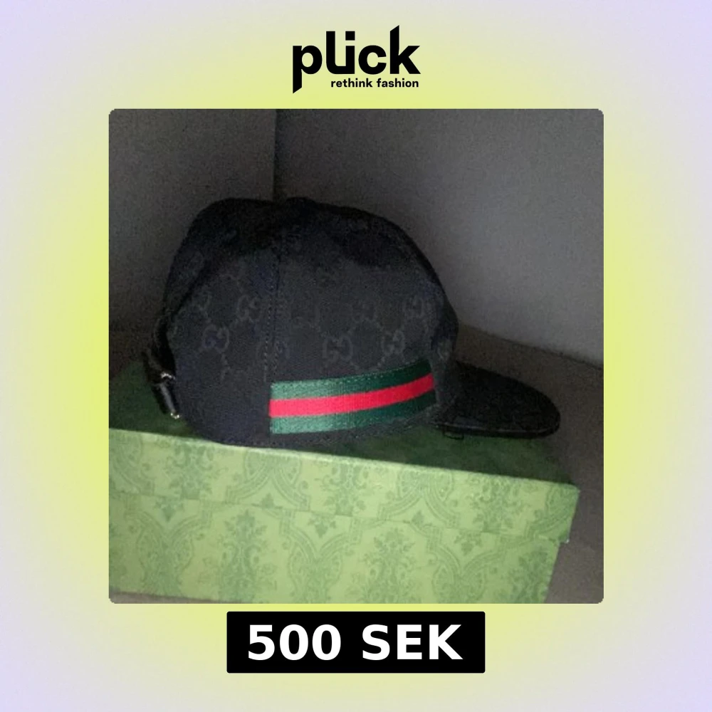 Snygg svart keps med diskret mönster och ett grönt och rött band. Justerbar rem baktill för perfekt passform. Perfekt för en stilren look.