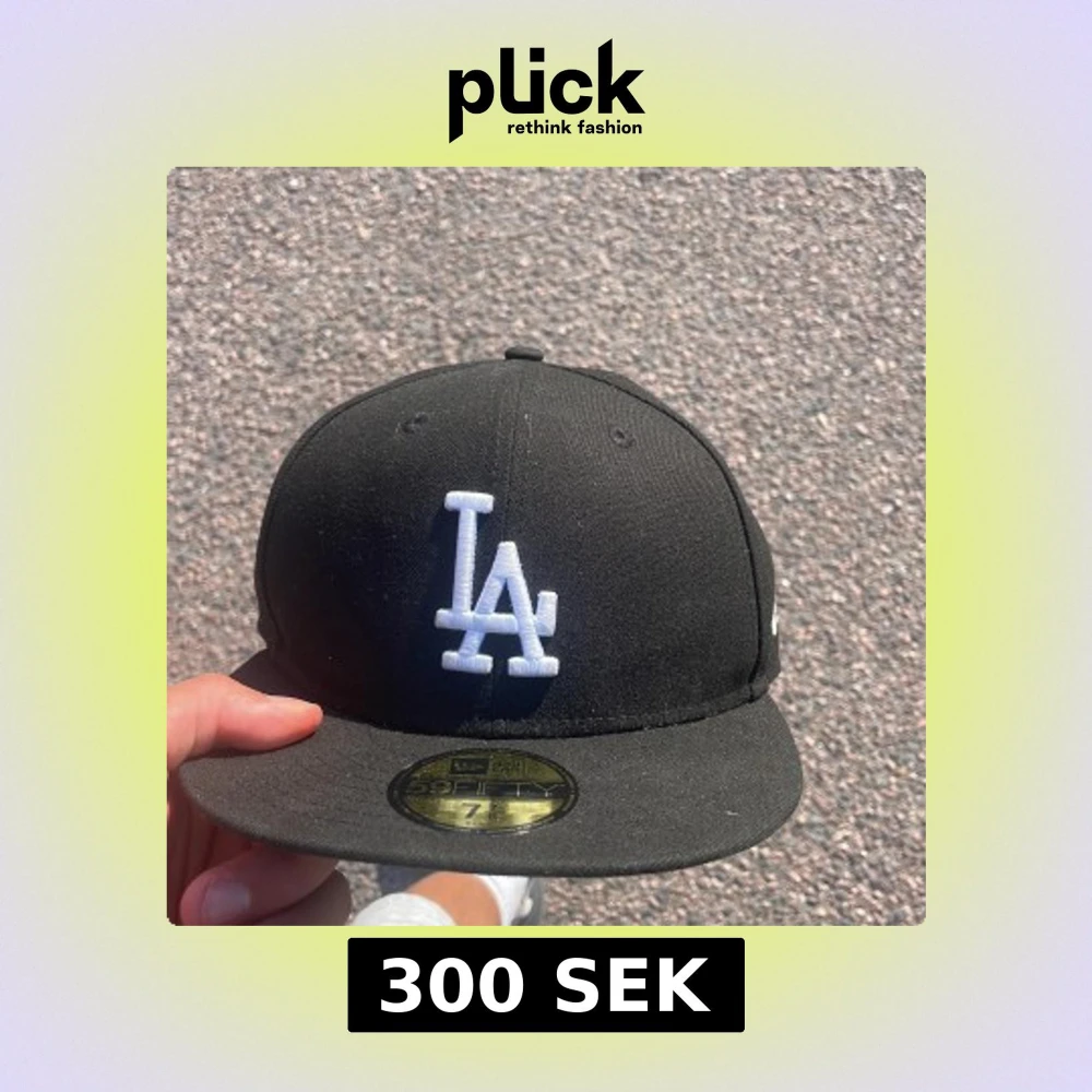 Säljer en svart New Era 59FIFTY keps med LA-logga broderad i vitt framtill. Klassisk flat peak och äkta MLB-merch. Kepsen är tillverkad i 100% polyester och har en stilren look som passar streetwear och sportiga outfits.