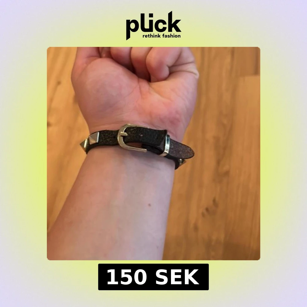 Coolt svart armband i läder med silvriga pyramidformade nitar runt om. Spännet är i metall och ger en snygg kontrast mot det svarta lädret. Perfekt accessoar för att ge din outfit en edgy vibe.