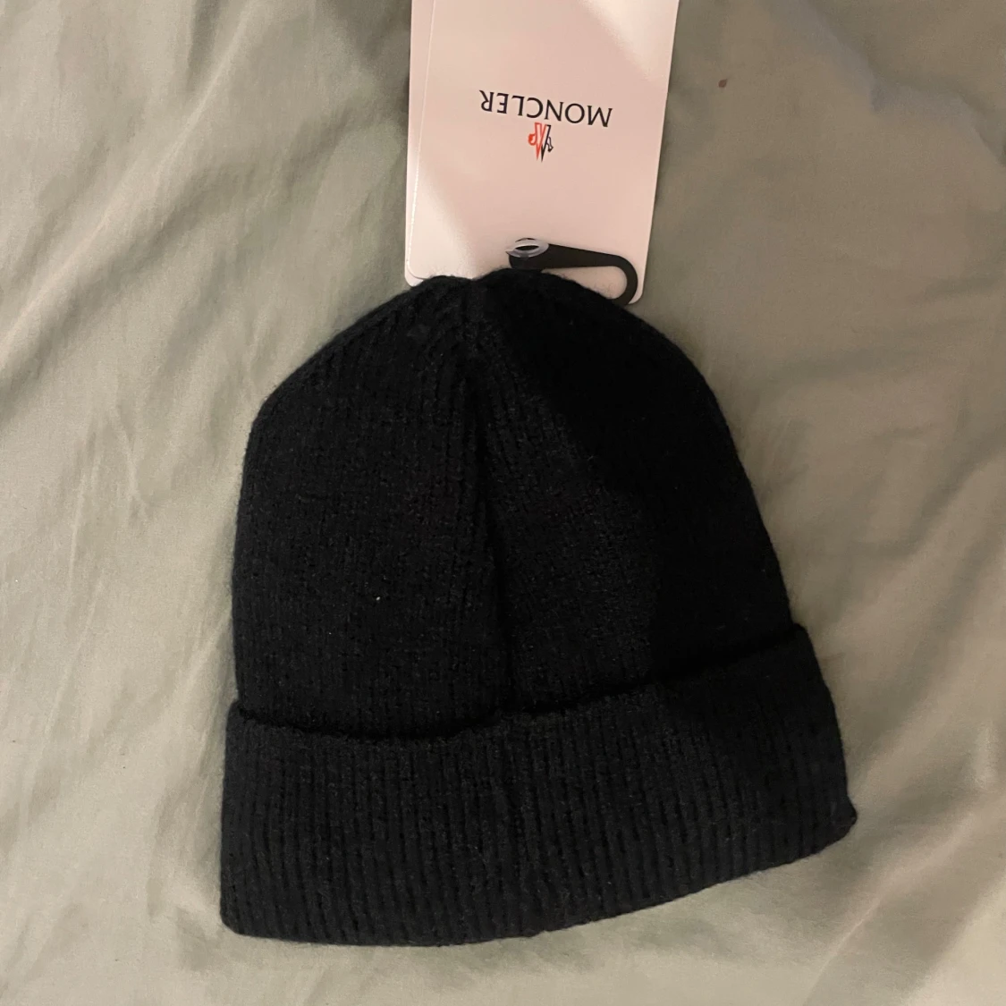 Svart ribbstickad mössa från Moncler med klassisk uppvikt kant och broderad Moncler-logga framtill. Tillverkad i mjuk ull som håller dig varm och snygg under kyliga dagar. Perfekt accessoar för en stilren look.