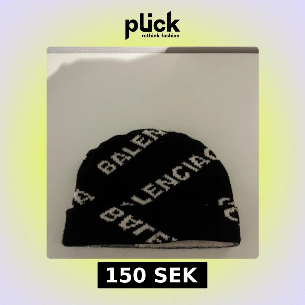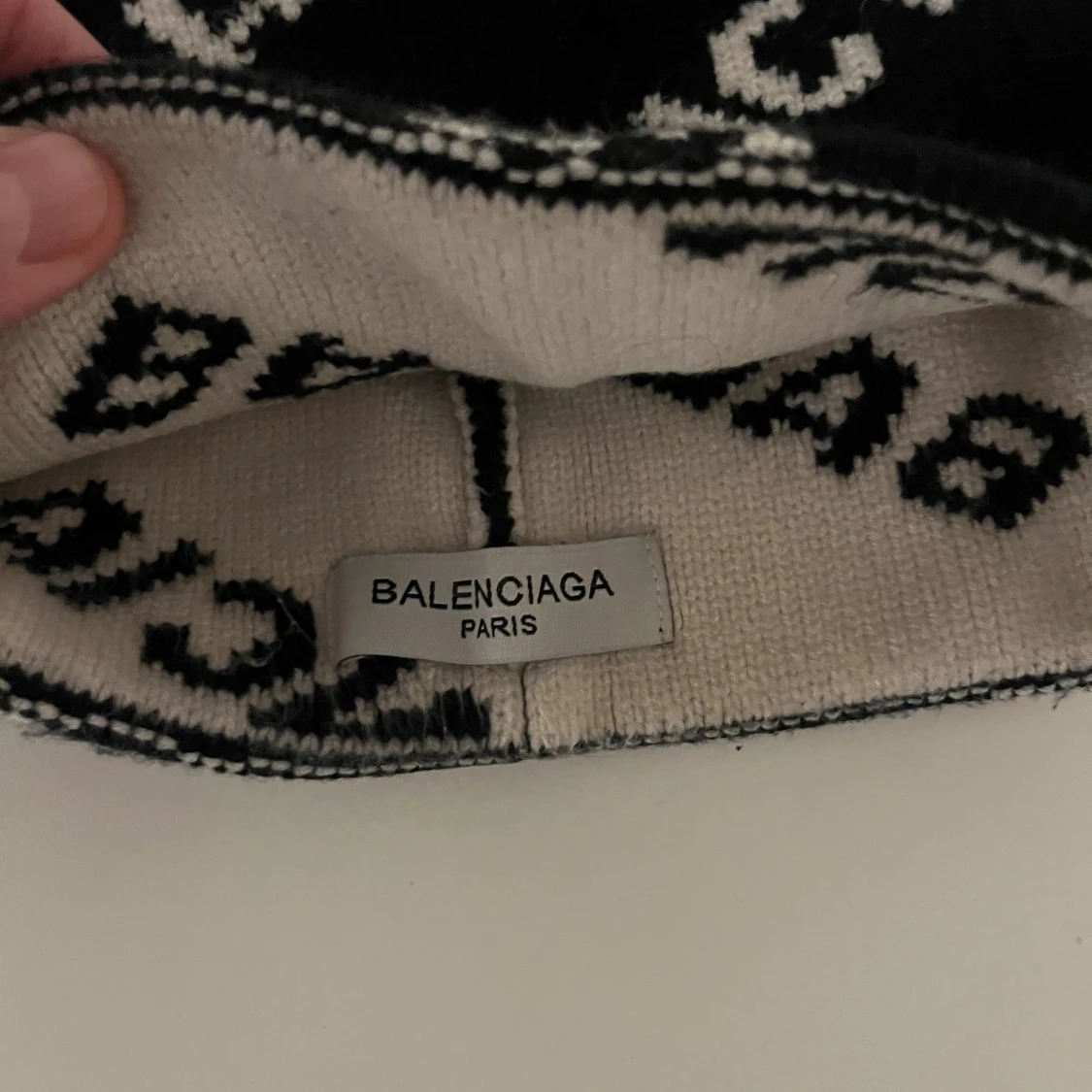 Snygg svart mössa från Balenciaga med vit logotyp i diagonal design över hela mössan. Stickad i mjukt material och har uppvikt kant. Perfekt accessoar för att lyfta din streetstyle.