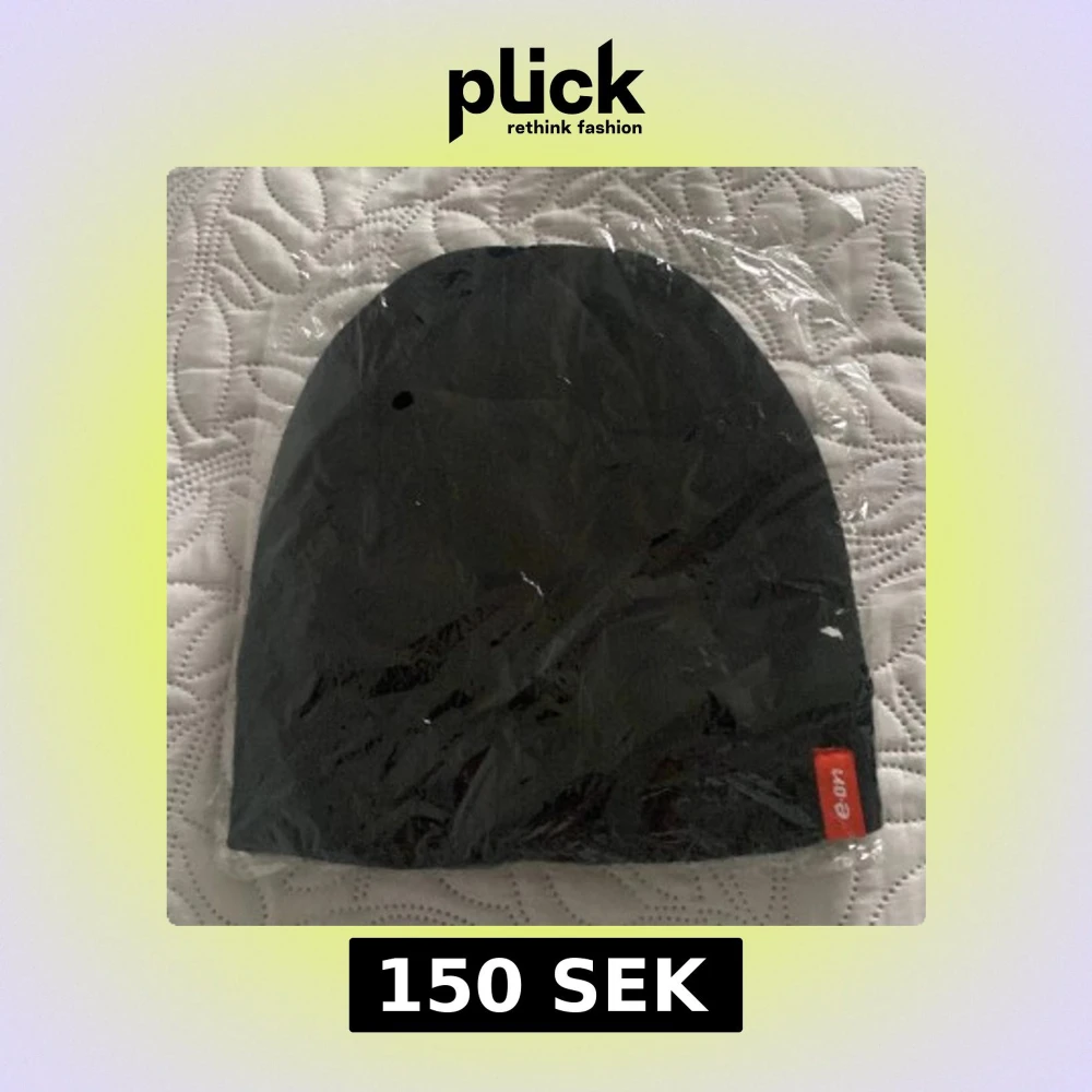 Svart, enkel och stilren mössa med en röd etikett där det står 'e.on' på kanten. Mössan har en klassisk form och är tillverkad i mjukt material som passar perfekt för kyliga dagar. Snygg accessoar för dig som gillar minimalistisk stil.