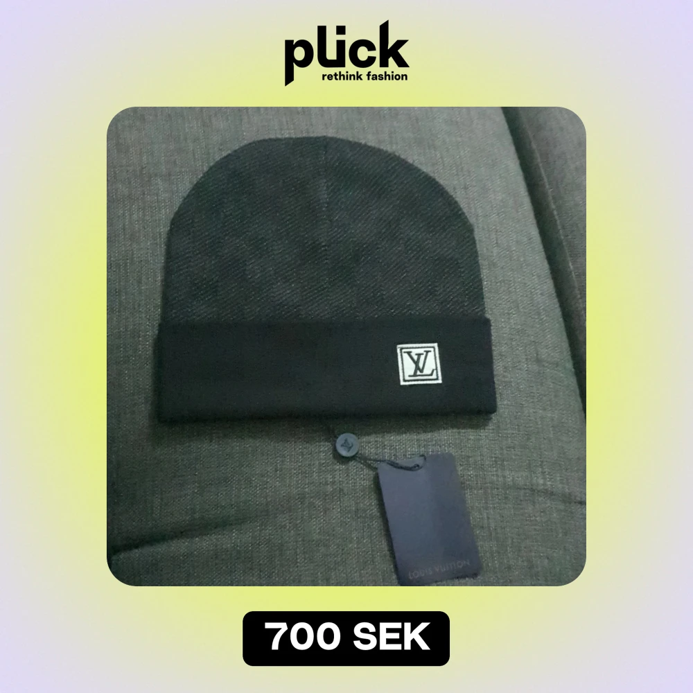 Snygg svart mössa från Louis Vuitton i nytt skick. Den har en stilren design med ett broderat LV-märke på uppviket. Perfekt för att hålla sig varm och trendig under kyliga dagar. Passar både till vardags och festliga tillfällen.