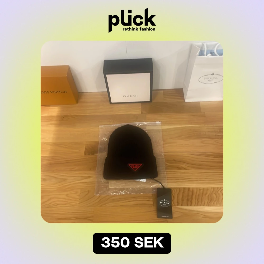 Snygg svart mössa från Prada i nytt skick. Den är ribbad och har en broderad röd logga framtill. Perfekt för att hålla sig varm och stilren under de kallare månaderna. Kommer med originaltag och förpackning.
