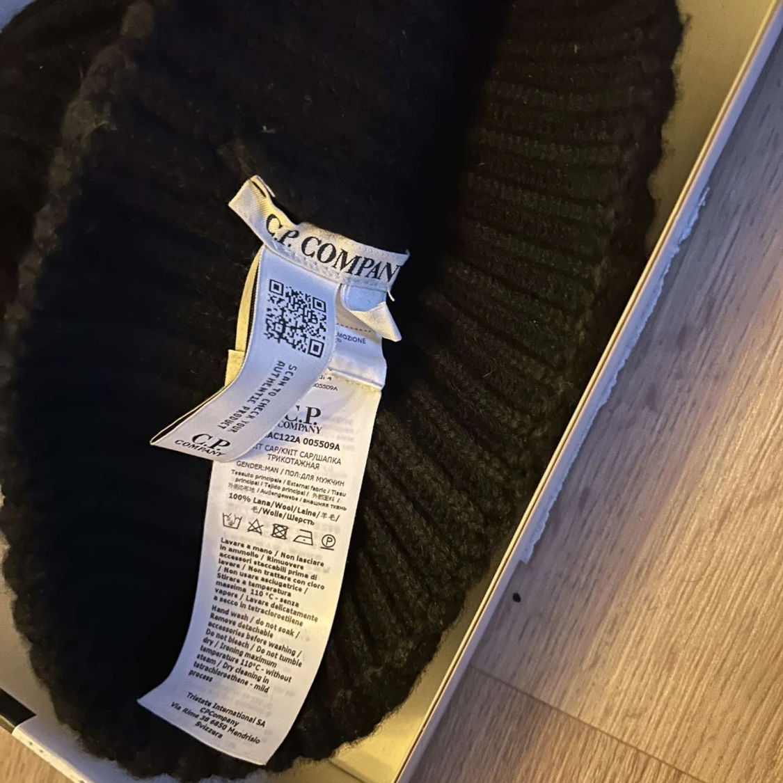 Snygg svart ribbad mössa från C.P. Company med inbyggda glasögon på framsidan. Perfekt för att ge en unik stil till din outfit. Mössan är tillverkad i ett mjukt och bekvämt material.