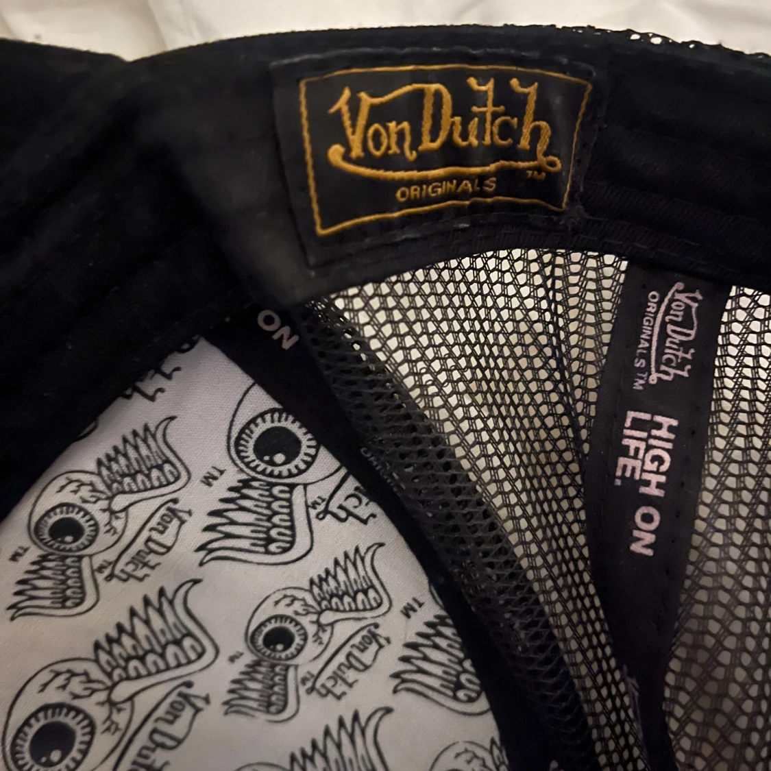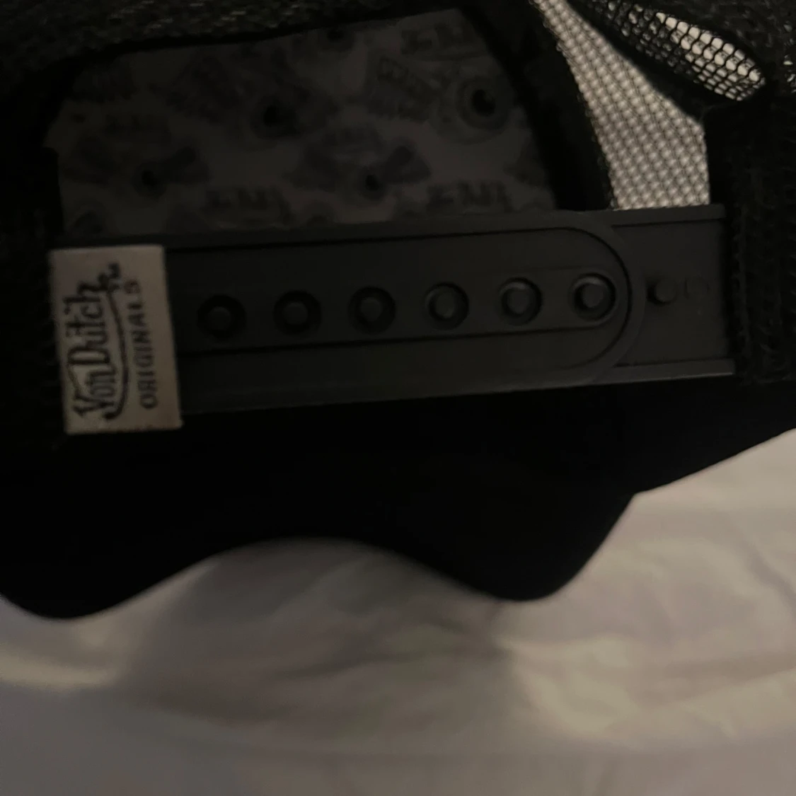 Svart von dutch keps med gult tryck! Bara använd ett fåtal gånger och är i mycket bra skick! Storleken är även justerbar.