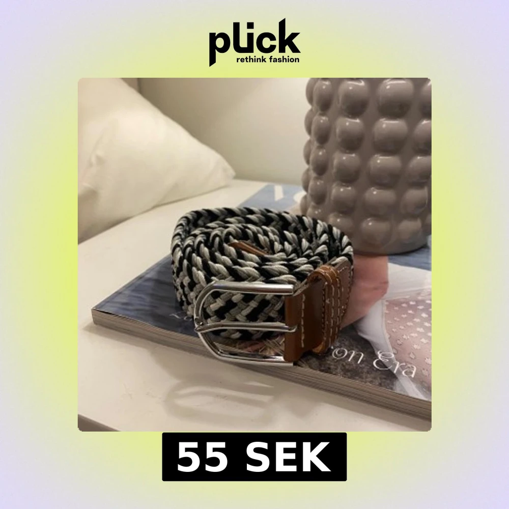 Snyggt flätat bälte i svart och vitt med bruna skinn-detaljer vid spännet. Bältet har ett silverfärgat dubbelt spänne och passar perfekt till jeans eller chinos. Ger en cool och modern touch till outfiten.