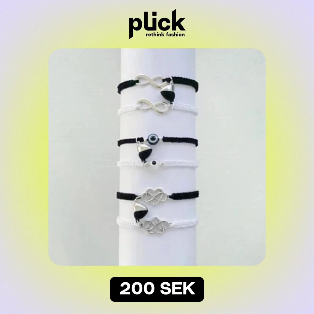 Säljer ett set med snygga armband i svart och vitt. Armbanden har coola silverdetaljer som infinity-symboler och hjärtan. Perfekt för att mixa och matcha till olika outfits. De är justerbara och passar de flesta handleder. Perfekt accessoar för både vardag och fest!
