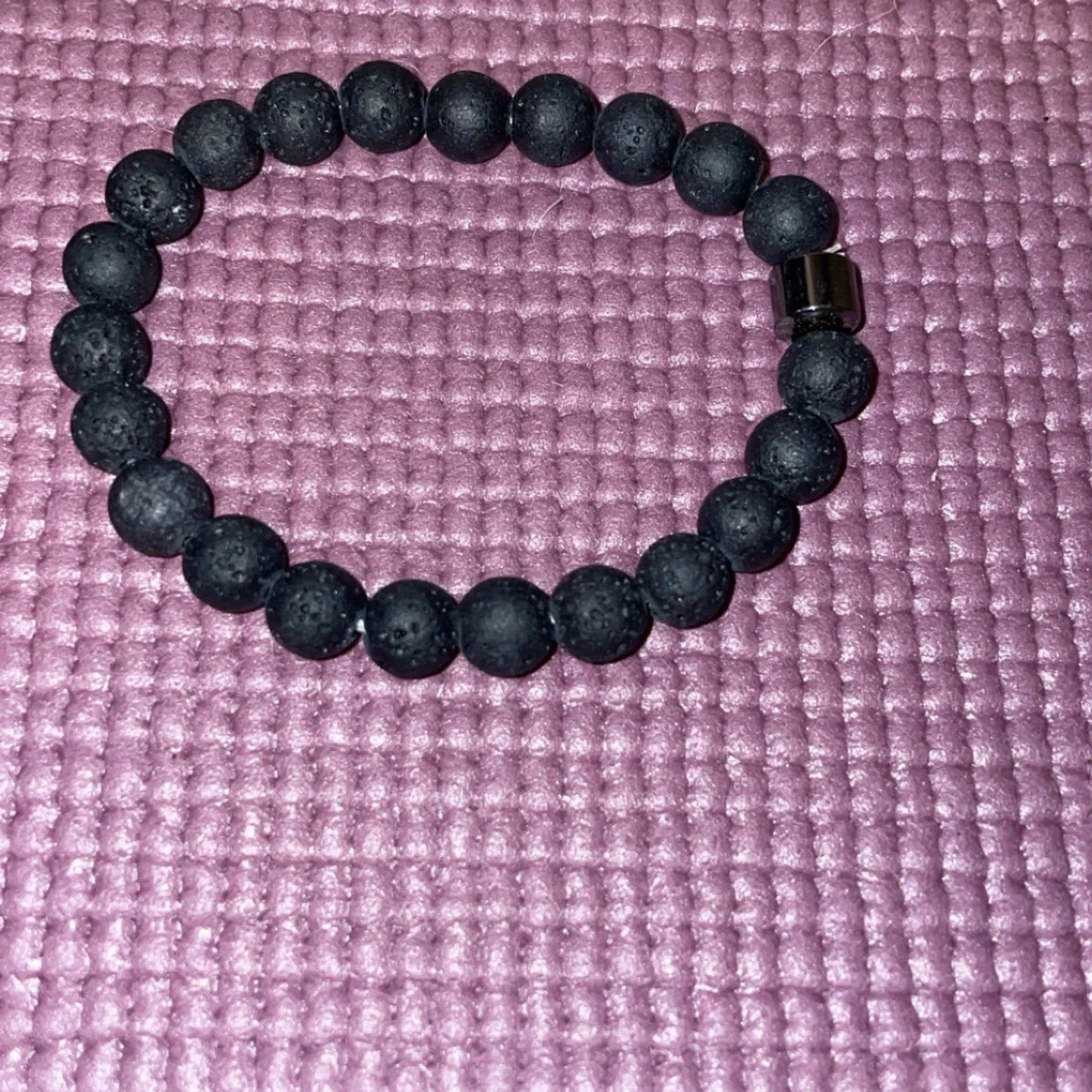 Snyggt svart armband med runda pärlor och en metallisk detalj. Perfekt för att ge en stilren touch till din outfit.