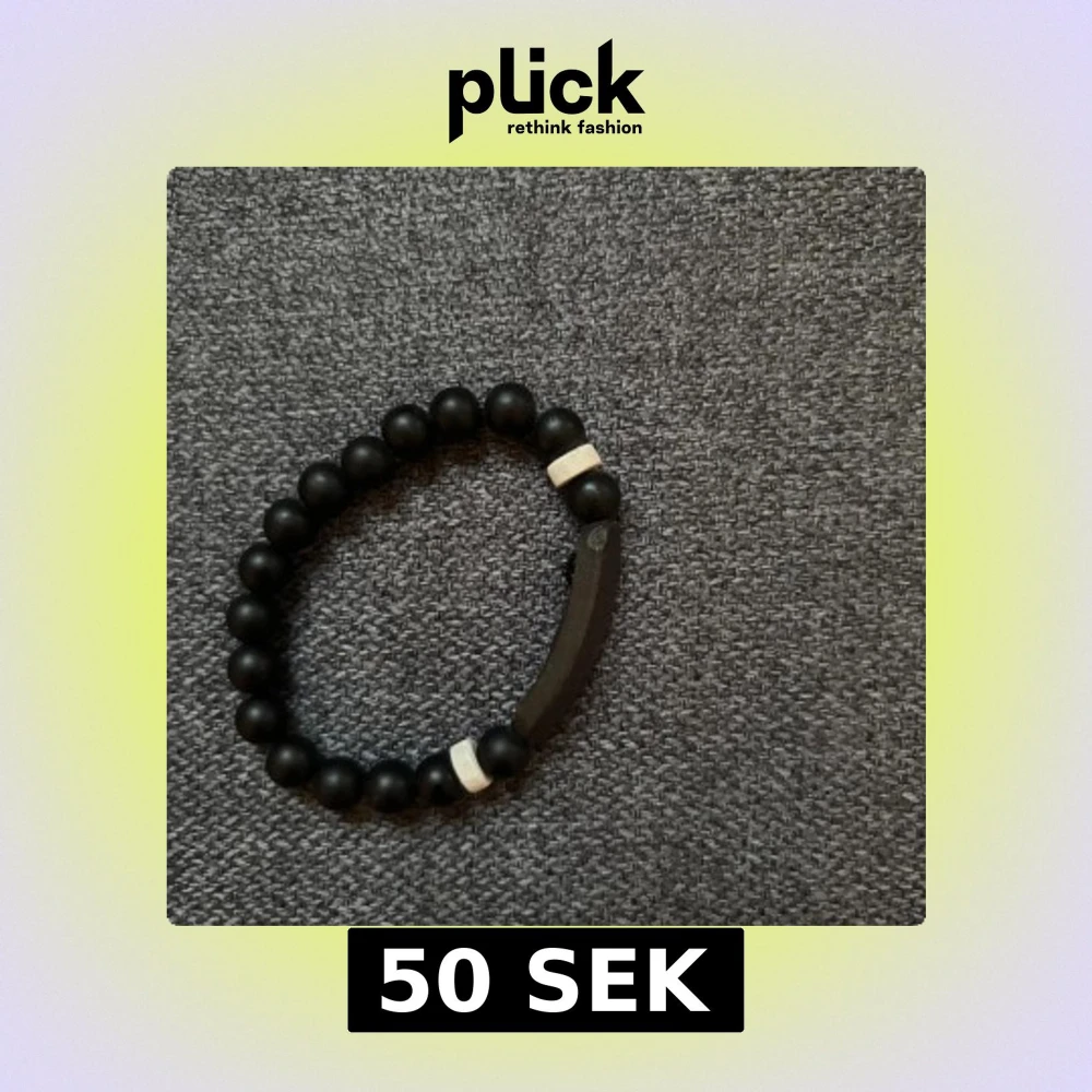 Stilrent armband med svarta runda pärlor och två vita detaljer. Perfekt accessoar för en clean look och passar till det mesta. Elastiskt band gör det enkelt att ta på och av.