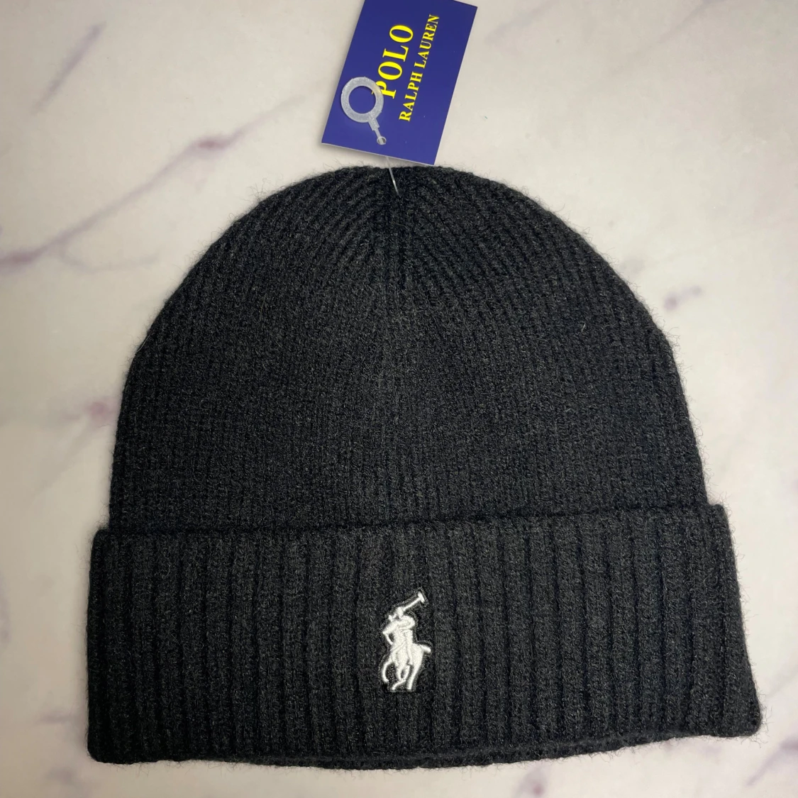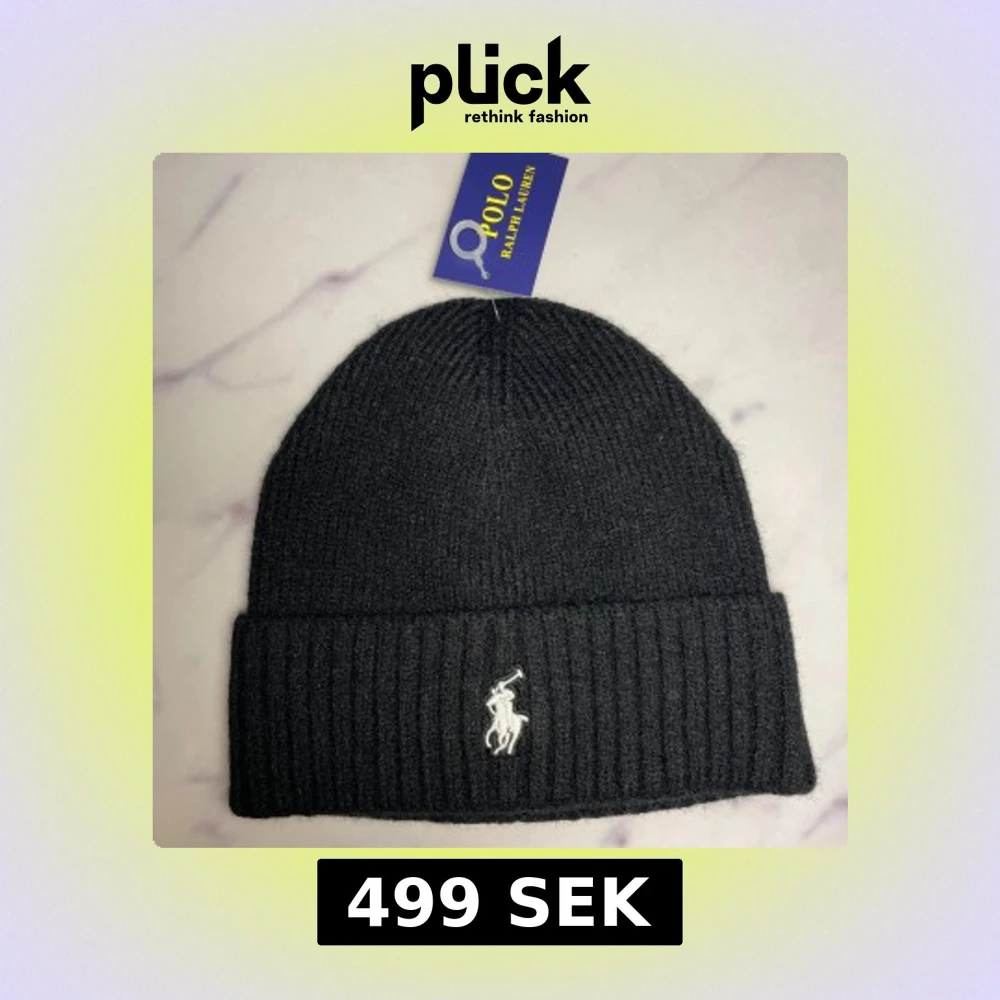 Svart ribbstickad mössa från Polo Ralph Lauren med klassisk broderad logga framtill. Mjuk och varm, perfekt för kyliga dagar. Enkel och stilren design som passar till allt. Tveka inte att höra av er vid frågor/prisförslag!🙌