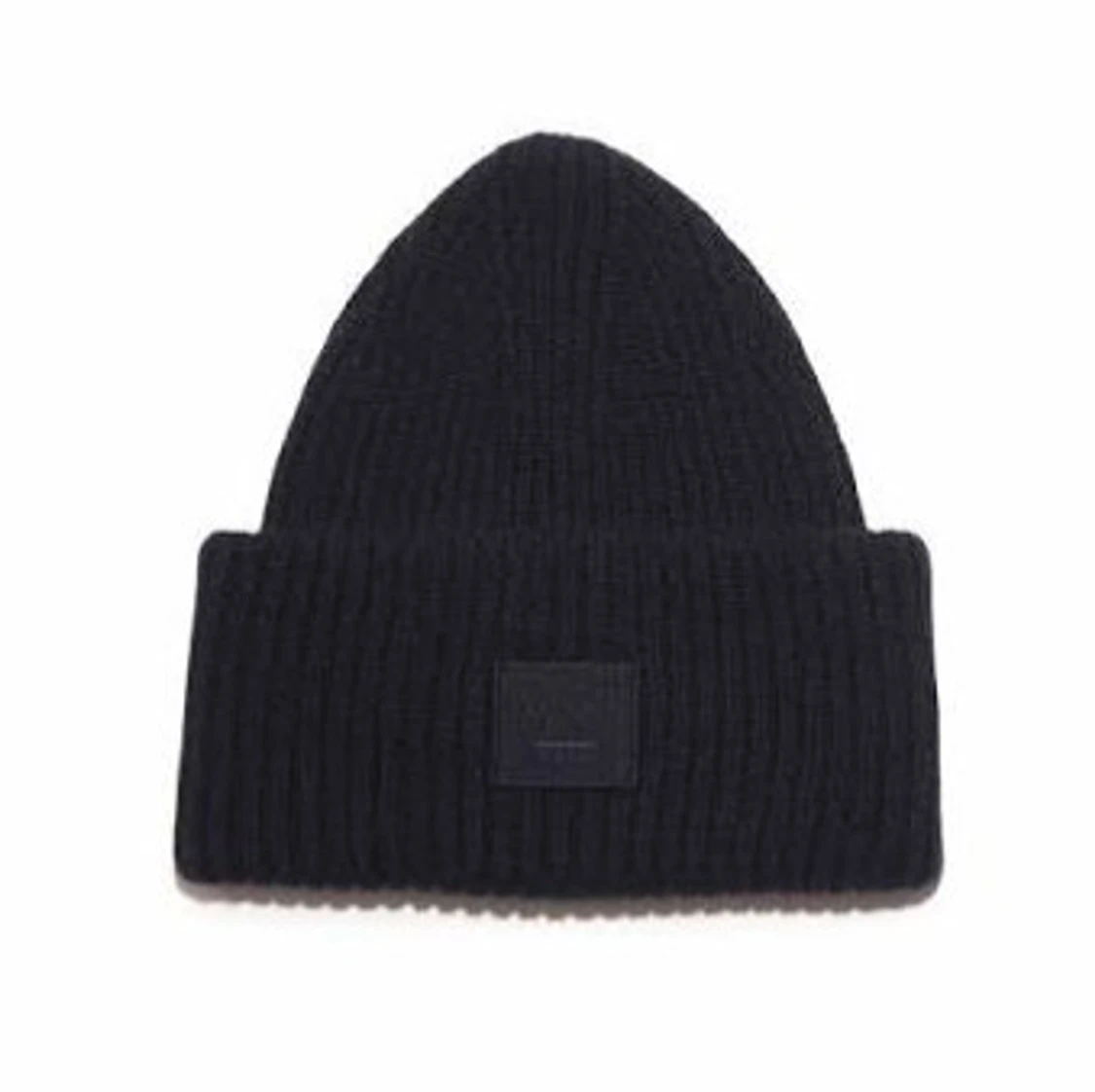 Säljer en svart ribbstickad mössa från Acne Studios med uppvikt kant och diskret logopatch framtill. Mössan har en klassisk, lite högre form och är perfekt för dig som gillar stilrena accessoarer. Materialet är mjukt och värmande.