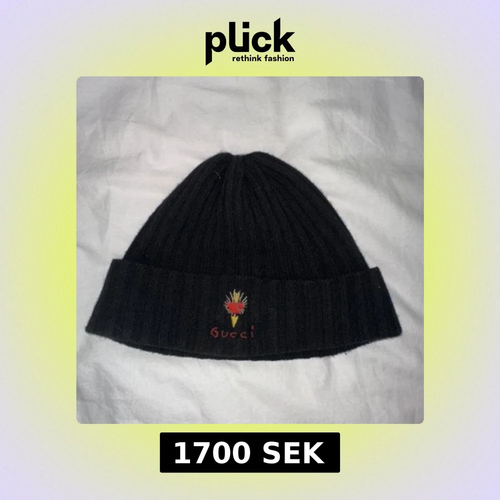 Snygg svart ribbad mössa från Gucci med broderad detalj framtill. Perfekt för att hålla värmen med stil under kyliga dagar. Tillverkad i Italien. Kvitto finns