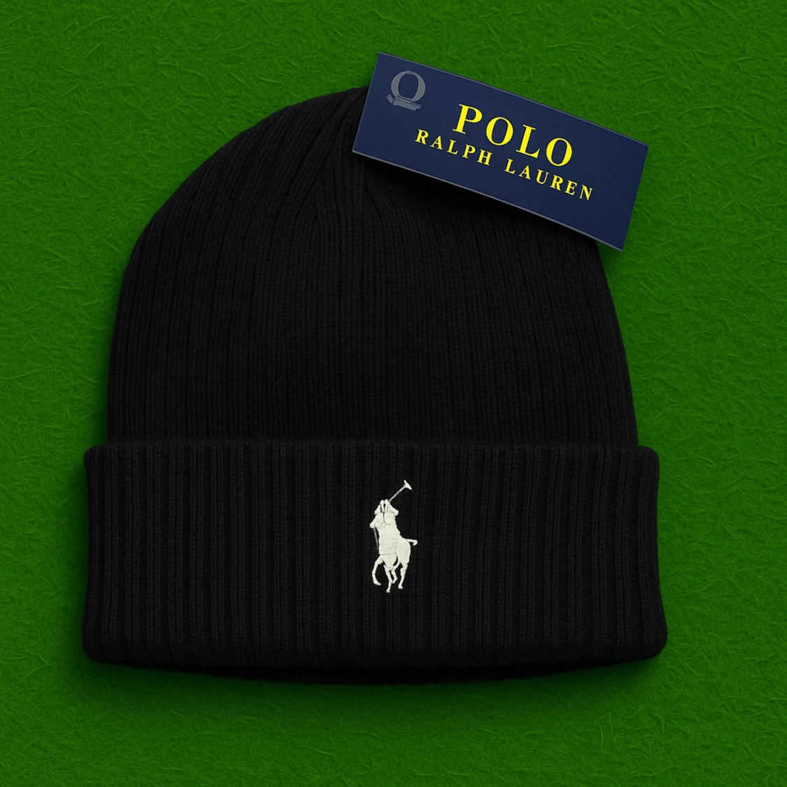 Svart ribbstickad mössa från Polo Ralph Lauren med klassisk vit broderad logga framtill. Snygg och enkel design som passar till allt, perfekt för kalla dagar. Materialet är mjukt och håller värmen bra.
