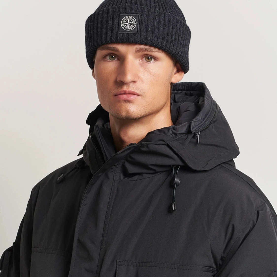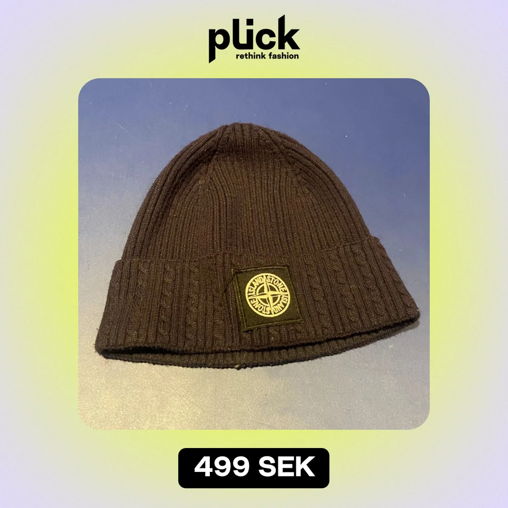 Säljer en snygg svart ribbad mössa från Stone Island. Den är i mycket bra skick och perfekt för höst och vinter. Mössan har en broderad logga framtill och är gjord i ett mjukt material som håller dig varm. Passar perfekt till både vardag och fest! Öppen till prisförslag!